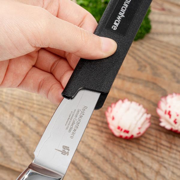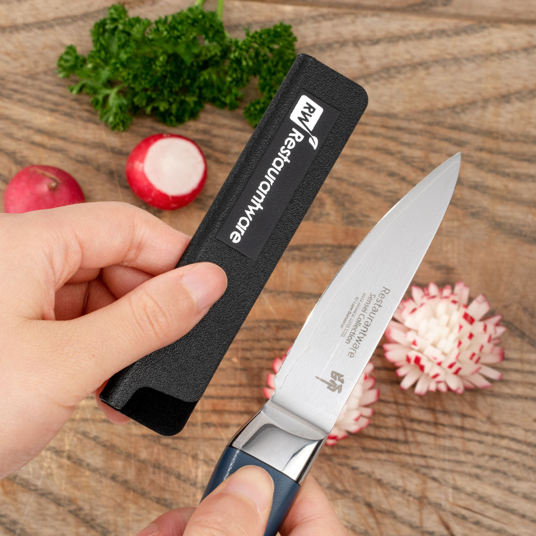 These plastic knife covers are designed to perfectly fit our Sensei Steak Knives, ensuring secure storage and protection. It is an ideal accessory for properly storing your knives before any food preparation tasks.
