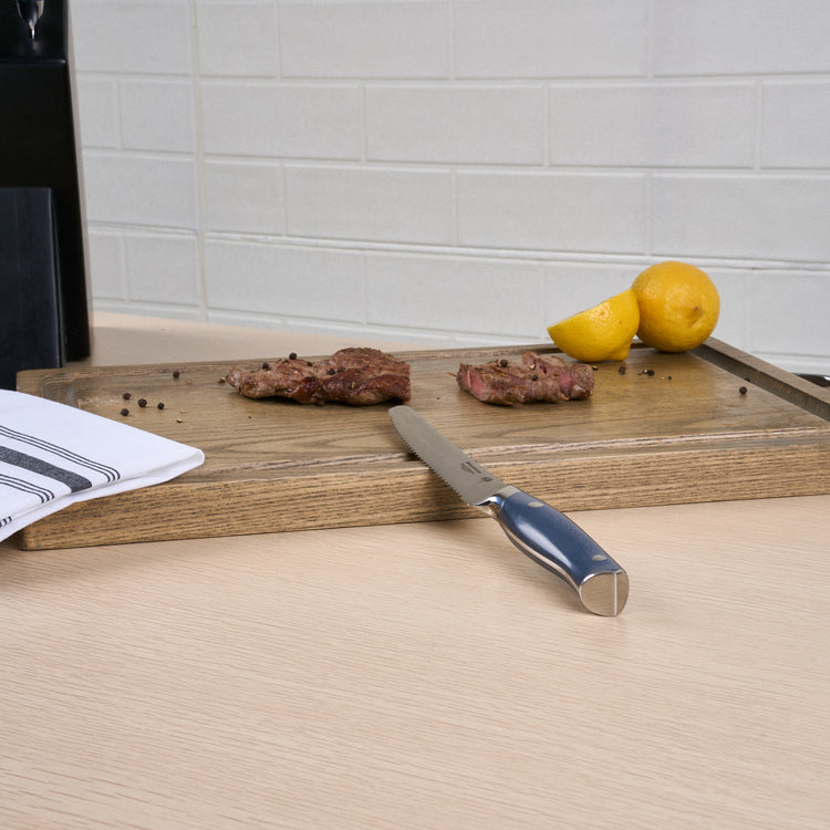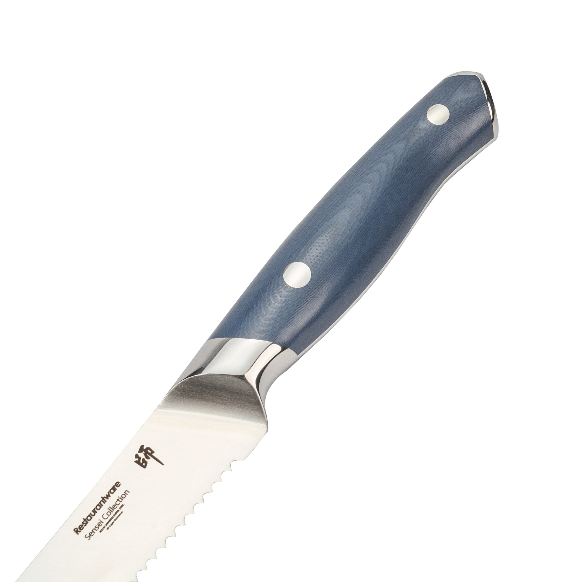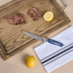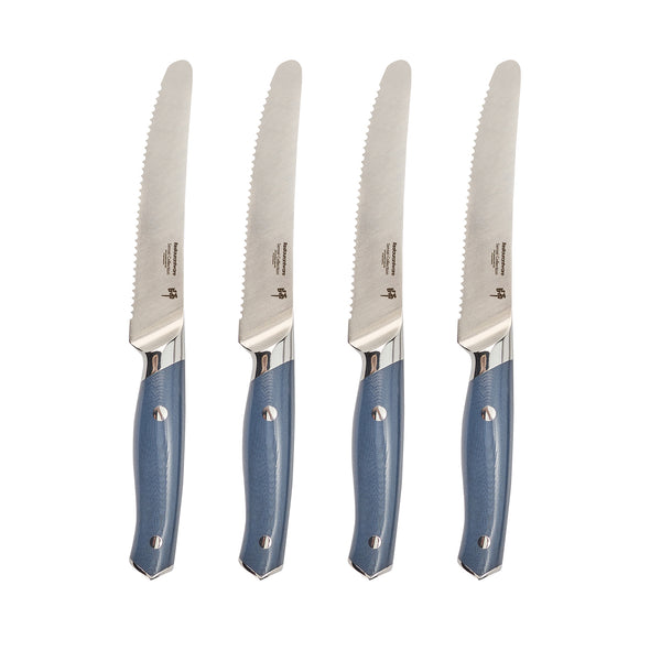 These kitchen knives feature a German-inspired, G-10 triple-riveted handle and full tang structure, providing exceptional balance and control for effortless cutting. Designed for comfort, empowering you to master every kitchen prep task with ease.