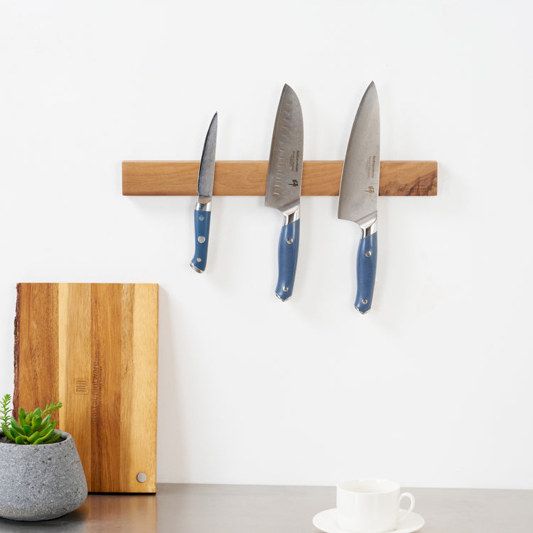 - Neodymium magnets securely hold your kitchen knives to ensure easy access and organization