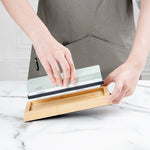 - Non-slip bamboo base keeps sharpener securely in place while in use