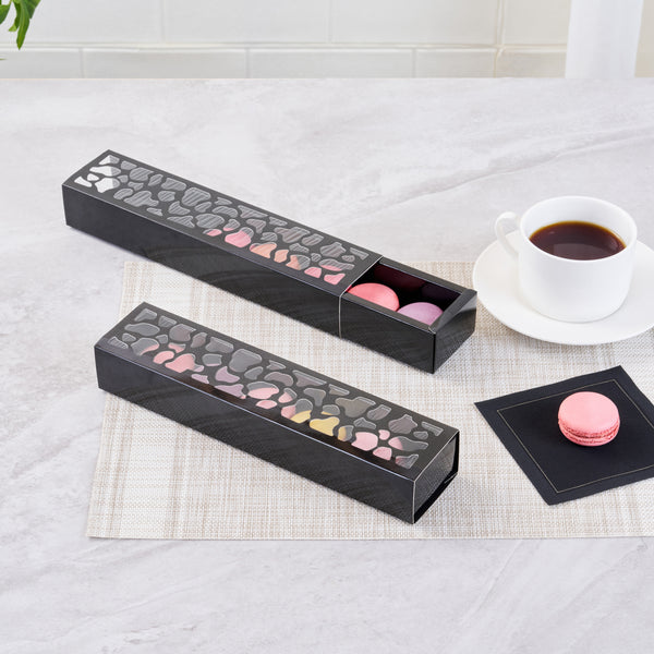 Available in classic black or white, our paper macaron boxes can match the aesthetic of any event. The sleek design serves as a stylish showcase for the vibrant macarons inside, creating a striking visual contrast.