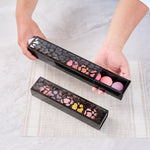 These French macaron boxes offer superior protection with a tailored cover that holds macarons firmly in place. Your delicate treats are shielded from potential accidents to keep them intact.