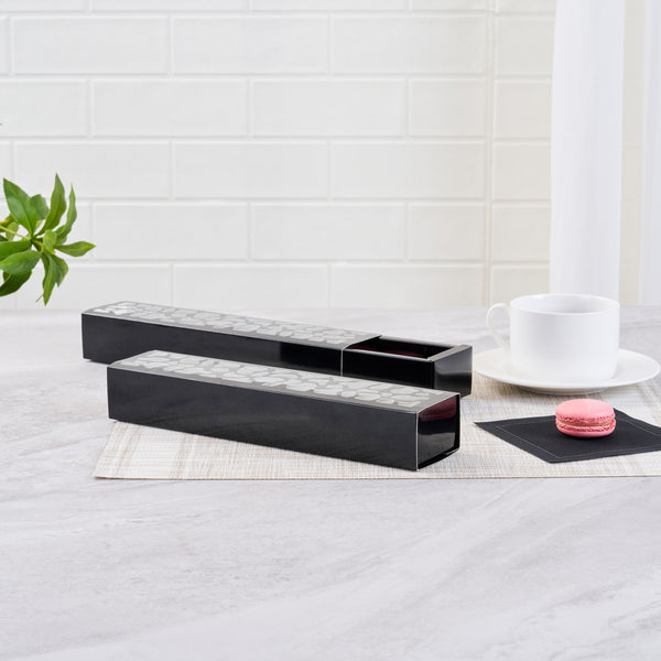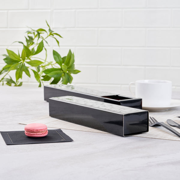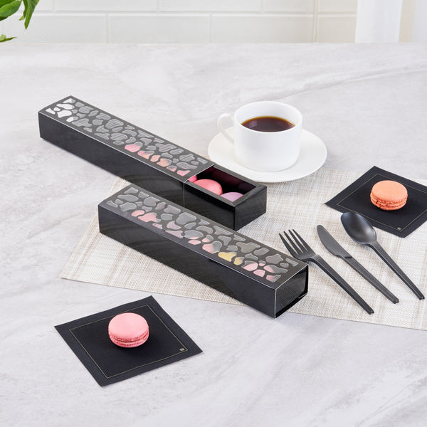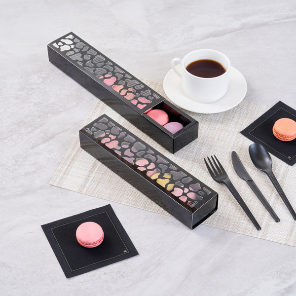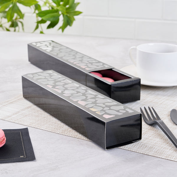 SENTIERO RECTANGLE BLACK PAPER MACARON BOX - HOLDS 5 MACARONS