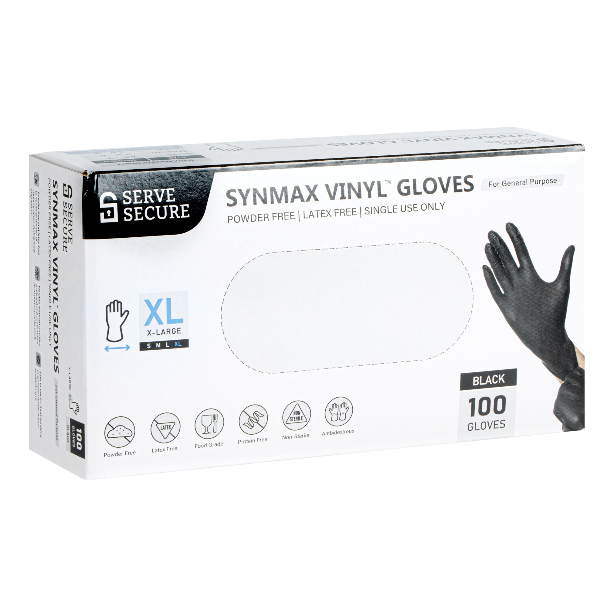 BLACK EXTRA LARGE SYNMAX VINYL GLOVES - POWDER-FREE, LATEX-FREE