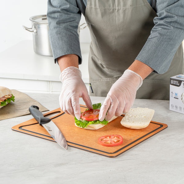 Ensure hygienic food preparation with these reliable disposable gloves. Serve Secure Vinyl Food Handling Gloves offer a powder-free design that eliminates contamination risks, guaranteeing safety during kitchen operations. Crafted from clear, latex-free vinyl, these gloves reduce allergic reactions, accommodating both staff and patrons with sensitivities. Their extra large size, measuring 9 inches in length and 4 1/2 inches in width, provides a comfortable fit for larger hands, enhancing dexterity and reducing hand fatigue in busy culinary environments. The gloves' higher tensile strength ensures they withstand rigorous use without tearing, maintaining hygiene standards essential for foodservice professionals. With more tactile sensitivity, chefs can precisely measure ingredients, enhancing efficiency and accuracy in meal preparation. Each order includes 1000 Serve Secure Vinyl Food Handling Gloves.