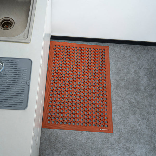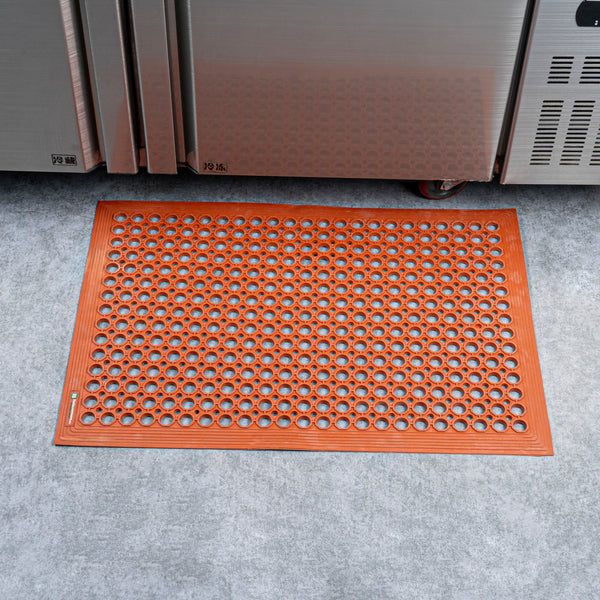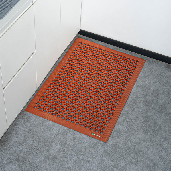 RED RUBBER FLOOR MAT - ANTI-FATIGUE, GREASE-RESISTANT