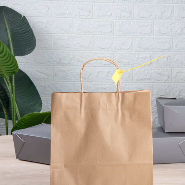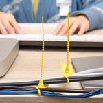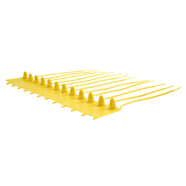 Secure your delivery orders with our Serve Secure Yellow Security Zip Ties. The tamper-evident design of these cable ties leaves behind proof of being opened that is easily identified, such as being cut or a missing handle. To tightly seal bags, these plastic zip ties are effortlessly locked by pulling the tail through the keyhole. Perfect for quickly identifying products, these cable management ties have a handle with ample space for labeling or adding expiration dates. Featuring a yellow finish, these tie wraps are suitable for color-coded organizational methods in your restaurant or retail store. For a quick cleanup after use, these plastic wire ties are disposable. These cord ties measure 7.75 inches in length to wrap around products of different sizes. Sold in a 100 count box.