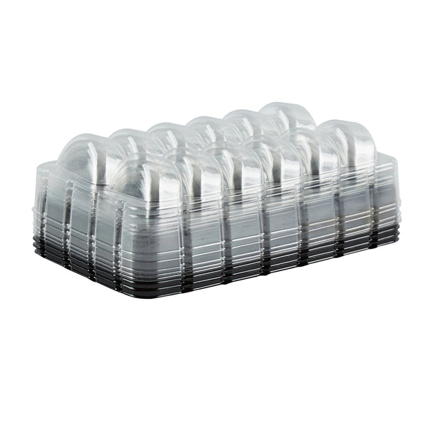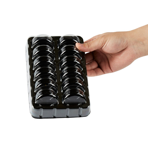 Perfectly pack sweet macrons with our Shock Safe Rectangle Black Plastic Macaron Take Out Boxes. Featuring molded macaron-shaped slots, these macaron boxes stylishly fit 12 of your pastries securely, making them ideal for takeaway orders. Made from premium plastic, these rectangular macaron gift boxes are recyclable for easy and eco-friendly disposal. These plastic macaron boxes include a shockproof lid built with triple-layer protection to ensure your sweet treats stay intact during delivery. The formfitting cover of these macaron boxes has a clear finish to showcase your creative confections with ease. Adorned with a sleek black finish, these plastic macaron boxes highlight the colorful macarons in the box. Measuring 11 inches in length by 4.5 inches in width by 2 inches in height, these macaron take out boxes are ideal for bakeries and pastry shops. Shipped in a 100 count box.