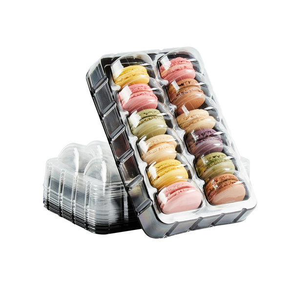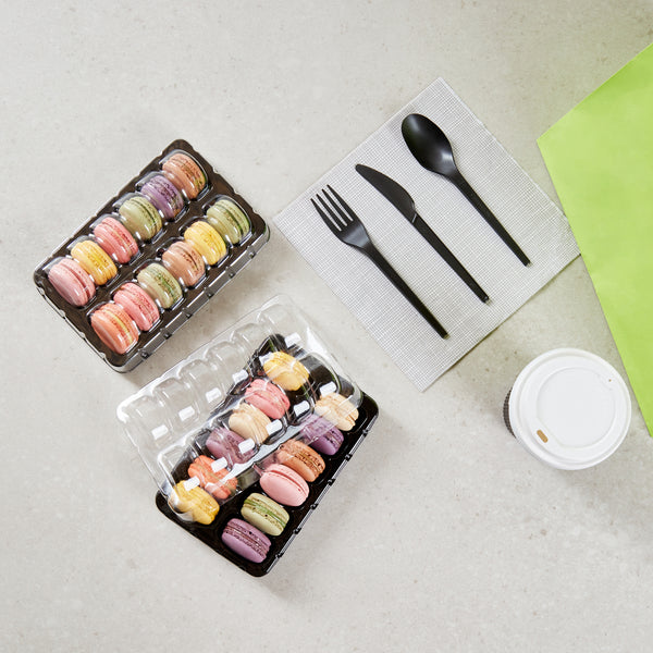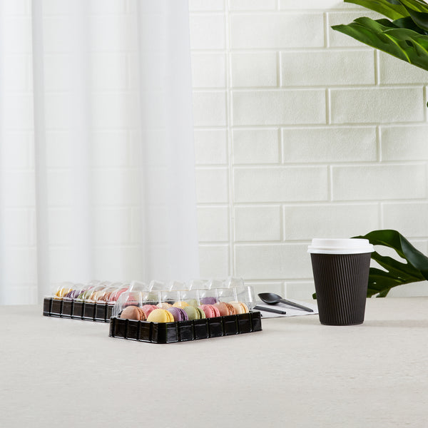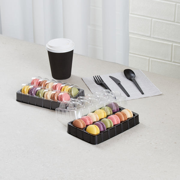 SHOCK SAFE BLACK PLASTIC MACARON TAKE OUT BOX - FITS 12 MACARONS