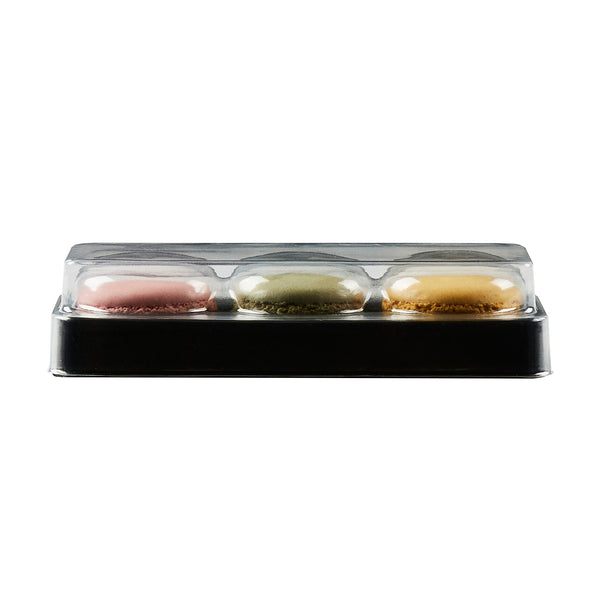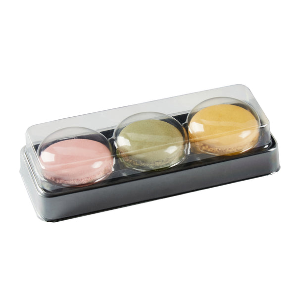 SHOCK SAFE BLACK PLASTIC MACARON TAKE OUT BOX - FITS 3 MACARONS