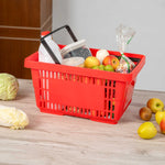 RED PLASTIC GROCERY MARKET SHOPPING BASKET - WITH PLASTIC HANDLES