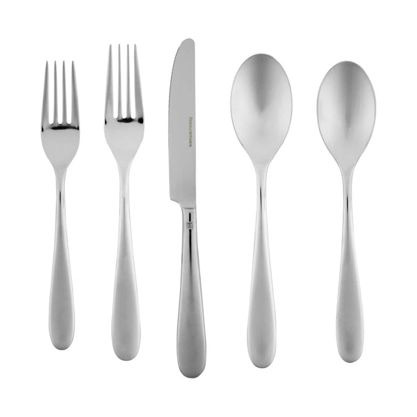 - 10-piece cutlery set includes 2 dinner spoons and forks, 2 dessert spoons and forks, and 1 table knife