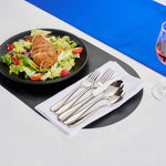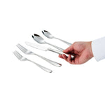 Experience elegance and durability with our Sovereign 18/10 Stainless Steel Flatware Sets. Manufactured from premium stainless steel, these flatware sets ensure long-lasting use, perfect for daily meals or special occasions. Designed to provide service for 2, these cutlery sets feature an ergonomic handle for comfortable handling and are fully dishwashable for your convenience. With durable stainless steel construction, these dishwashable cutlery sets ward away corrosion and tarnish. These flatware sets include a 6.75-inch dessert spoon and a 6.75-inch dessert fork for your sweet indulgences, a 7.75-inch dinner spoon and an 8-inch dinner fork for main courses, and a 9.25-inch table knife for precision cutting. Sold in a 10 count box.