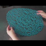 Prevent stains and heat from damaging your tables with our Spinweave Cerulean Blue Paper Handmade Placemats. Featuring a handwoven design, these decorative placemats upgrade the table settings at your restaurant or catered event. The cerulean blue finish of these kitchen table mats gives your place settings an elegant appearance. Designed with a round shape, these dining table placemats provide the perfect backdrop for your tablescapes. These round woven placemats are constructed from durable paper, allowing you to lightly reuse them numerous times at your catered event or restaurant. Each wipeable placemat measures 15 inches in diameter. Due to the handmade nature of these placemats, slight variations in the weave pattern may occur. Sold in a 6 count box.