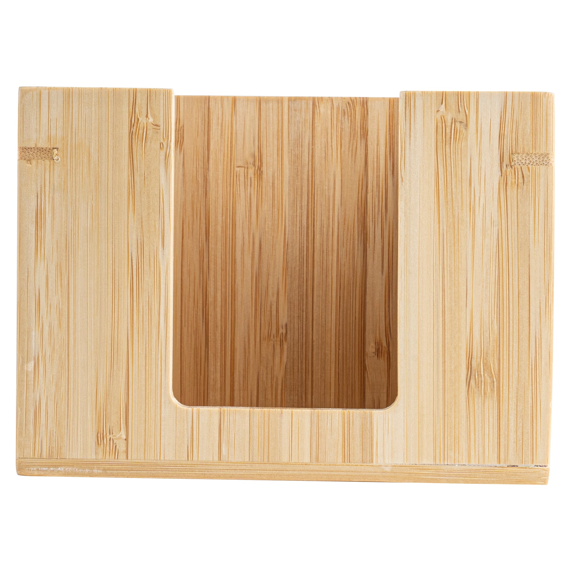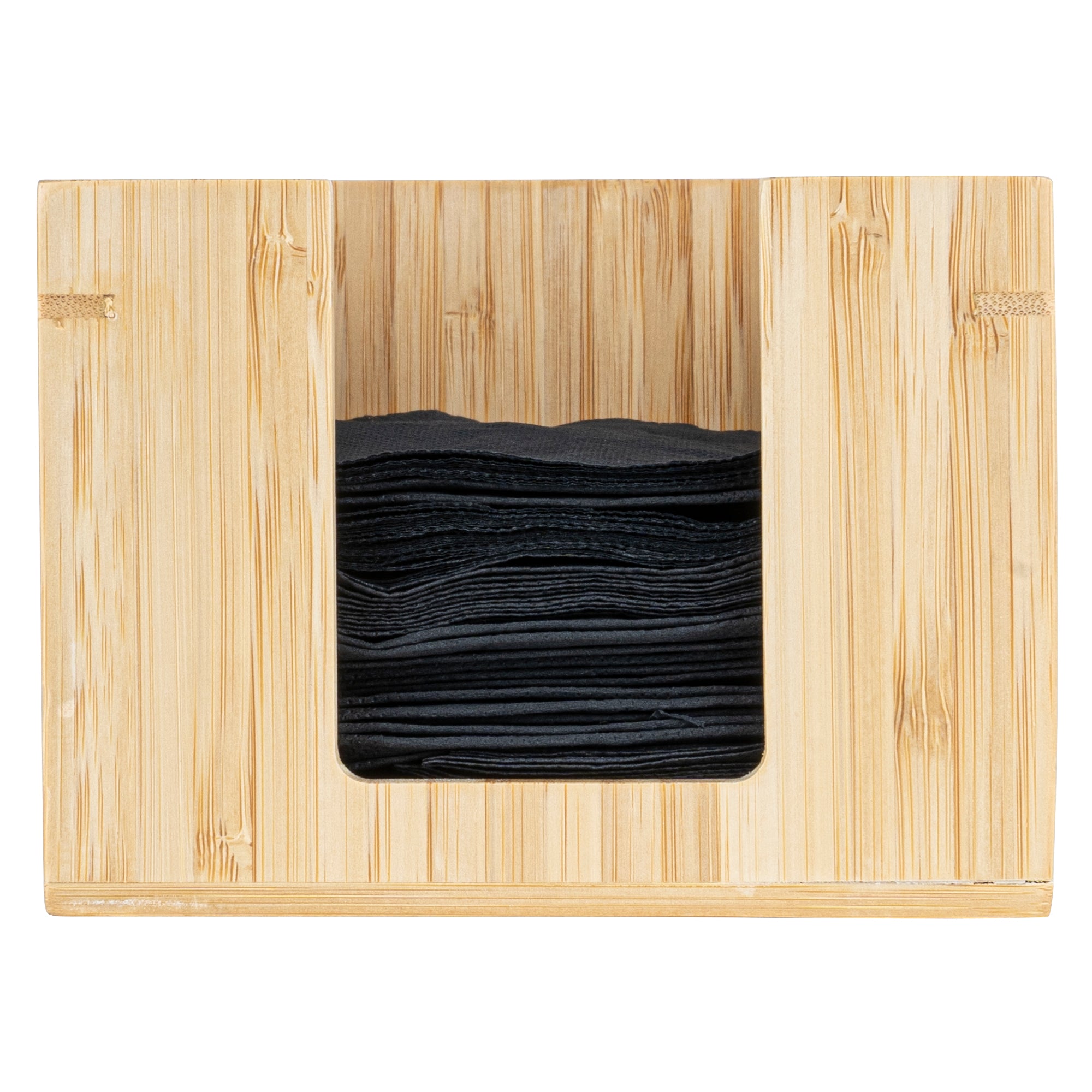Enhance dining efficiency with this stylish bamboo napkin holder. The Nature Tek Square Bamboo Napkin Holder's open-top design allows quick access to cocktail napkins, ensuring seamless service during busy periods. Made from sturdy bamboo, this cocktail napkin holder is designed for long-term use, providing an elegant and durable addition to your tabletop setup. With dimensions of 5.5 inches in length, 5.5 inches in width, and 4 inches in height, its square shape perfectly accommodates standard cocktail napkins, making it an ideal napkin organizer for bars and restaurants. The eco-friendly bamboo material not only adds a natural charm but also supports sustainability efforts in foodservice settings. Elevate your establishment's presentation and functionality with this essential accessory. Each order includes 1 Square Bamboo Napkin Holder.