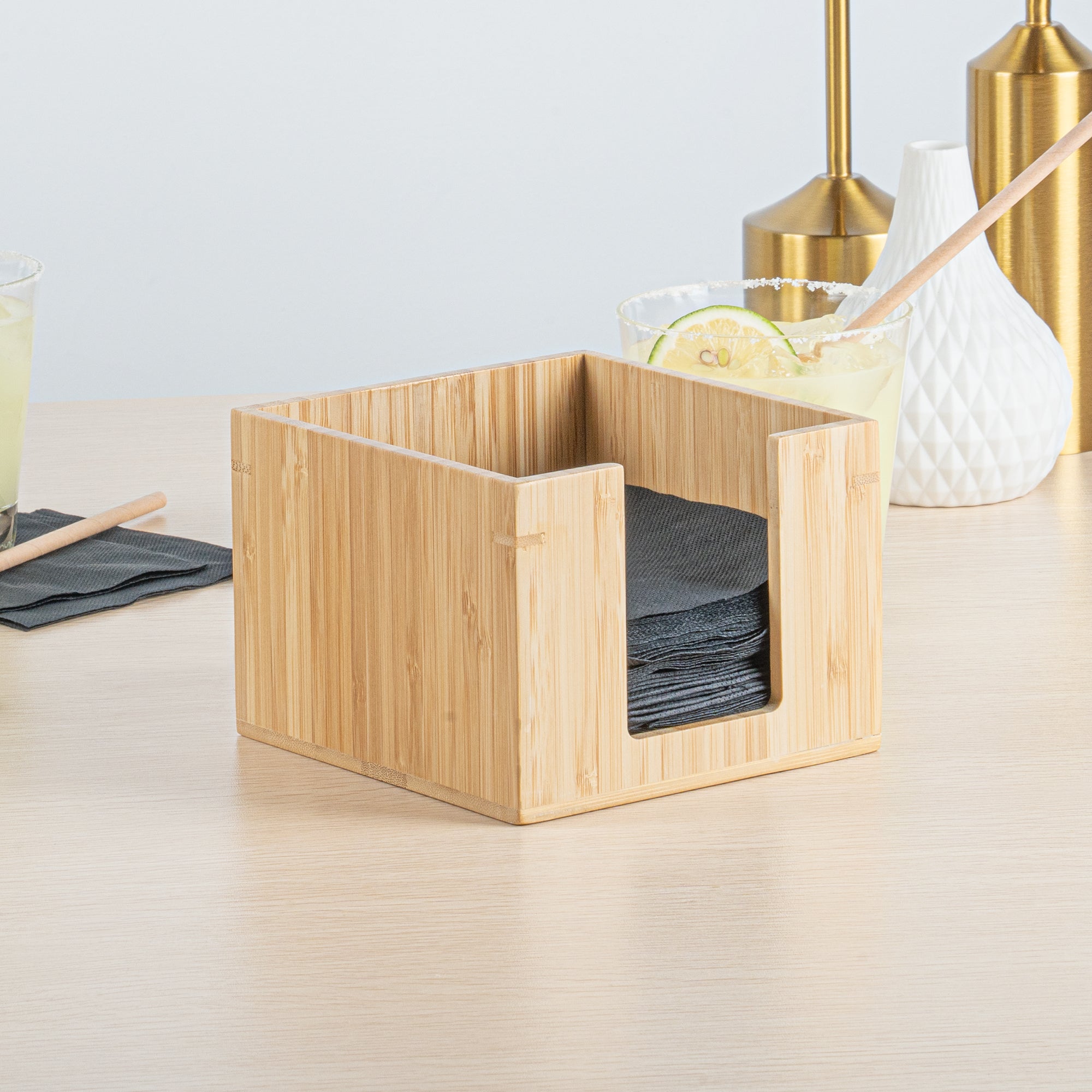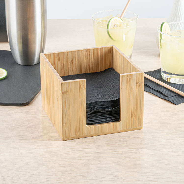 SQUARE NATURAL BAMBOO COCKTAIL NAPKIN HOLDER