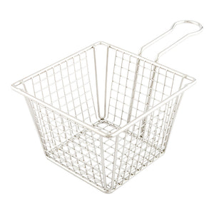 Impress your guests with our Met Lux Square Silver Stainless Steel Large Mini Fryer Basket. Constructed using tough stainless steel, this French fry basket is a blend of resilience and reusability, making it compatible with various food forms. The waffle grid of this mini fryer basket adds a stylish touch to your presentation. Plus, the substantial rim of this wire serving basket effectively minimizes any accidental overspills, securing the contents within the basket. Tailored for all kinds of commercial usage, this easy-to-clean and greaseproof fry basket ensures handling hot fries becomes a breeze. The built-in handle of this silver fry basket prioritizes security when delivering your mouth watering dishes. With a size of 8 inches in length by 5 inches in width by 3.5 inches in height, this recyclable fryer basket with waffle grid effortlessly sophisticates your foodservice. Shipped in a 1 count box.