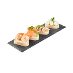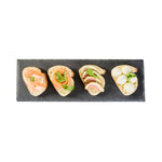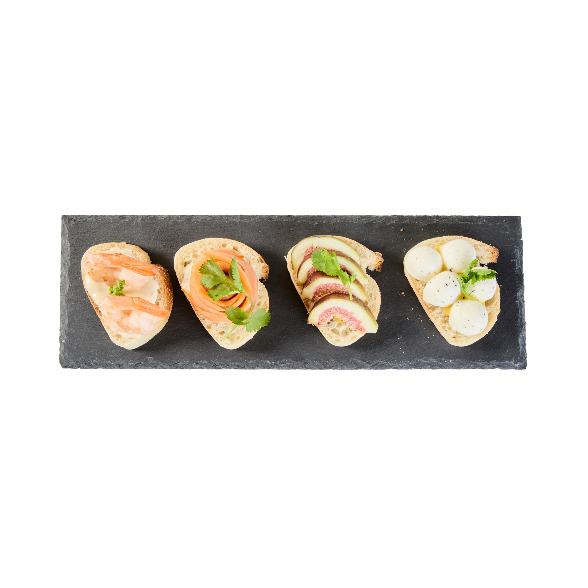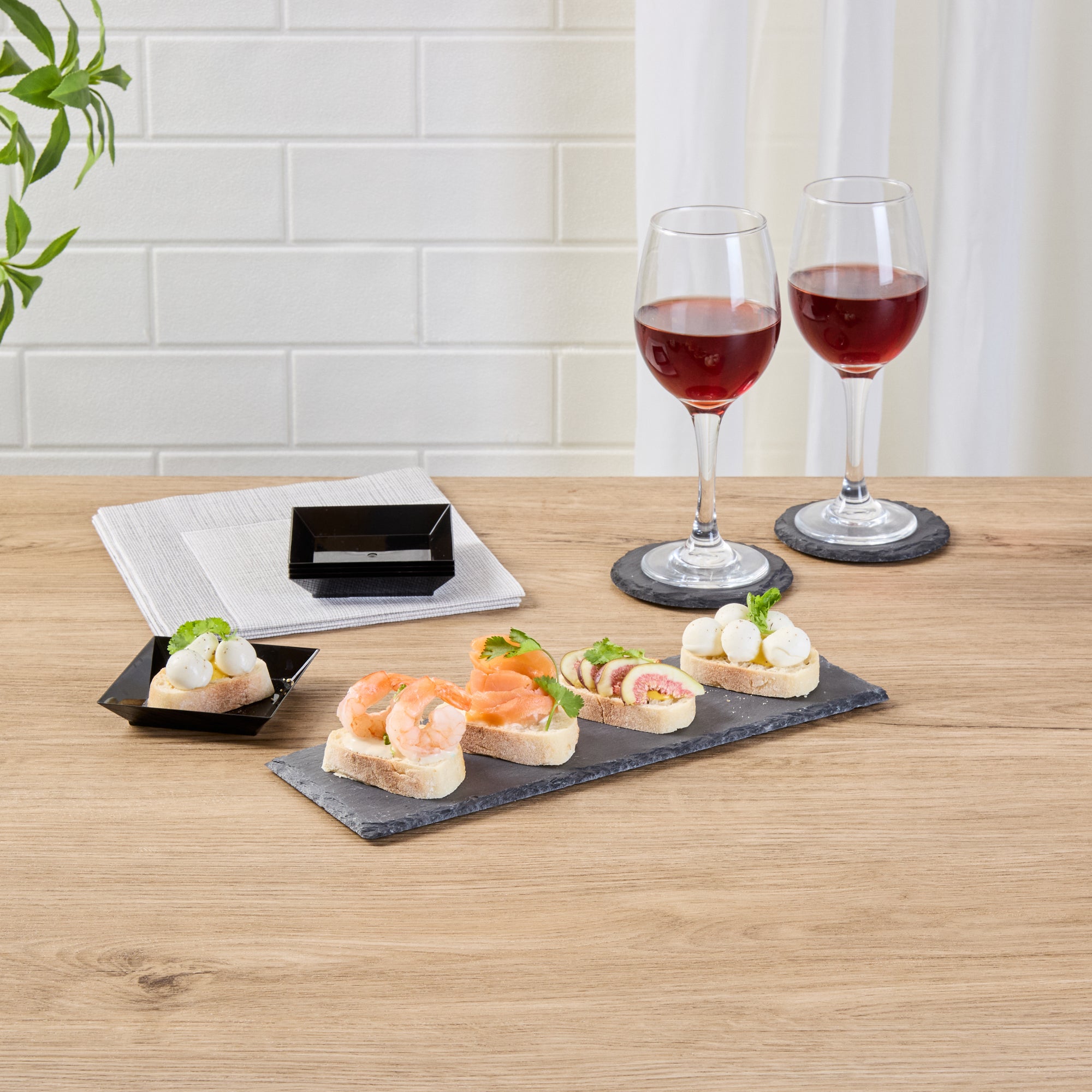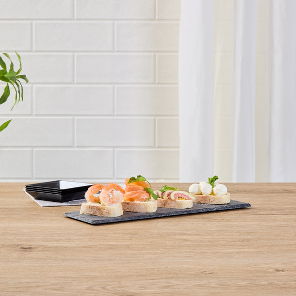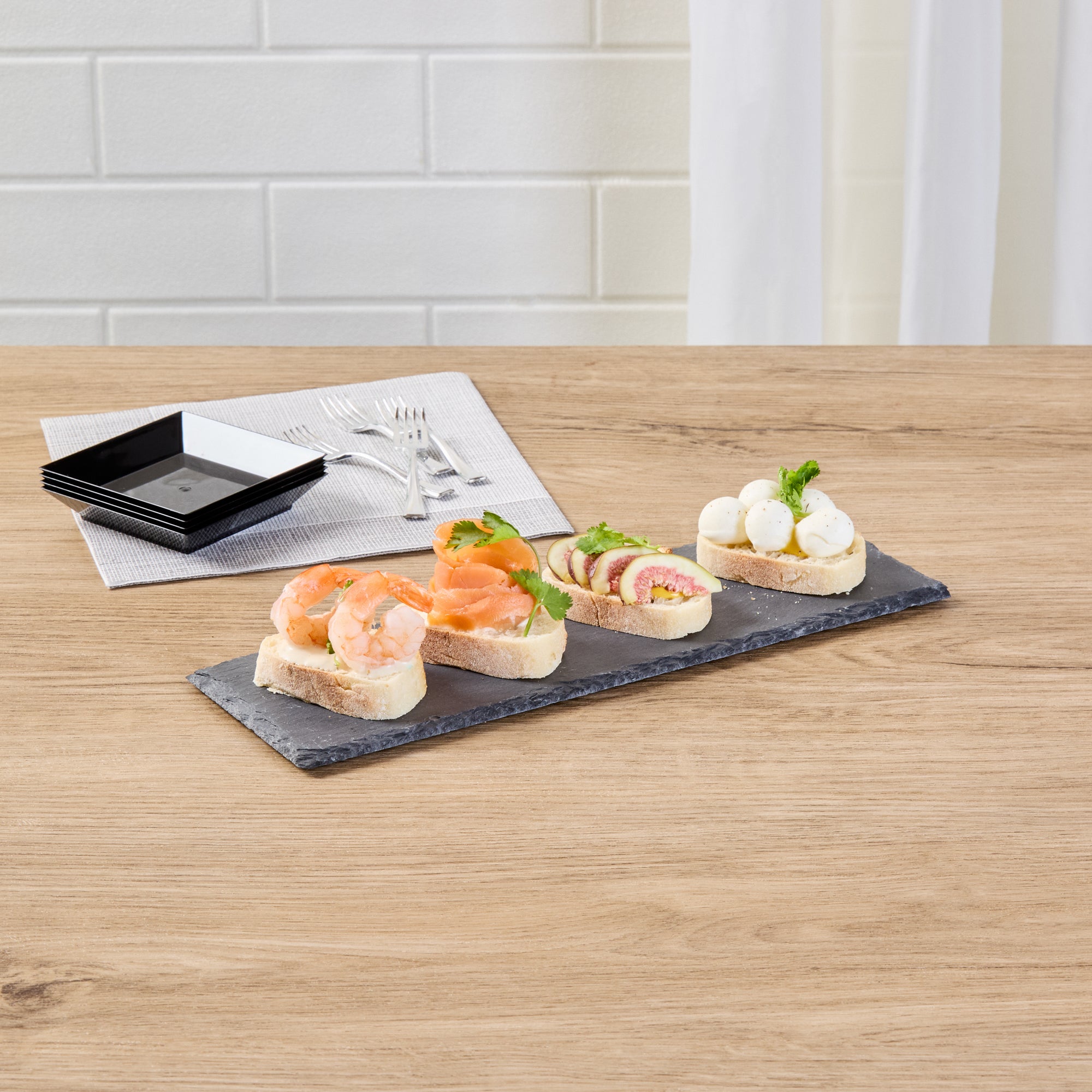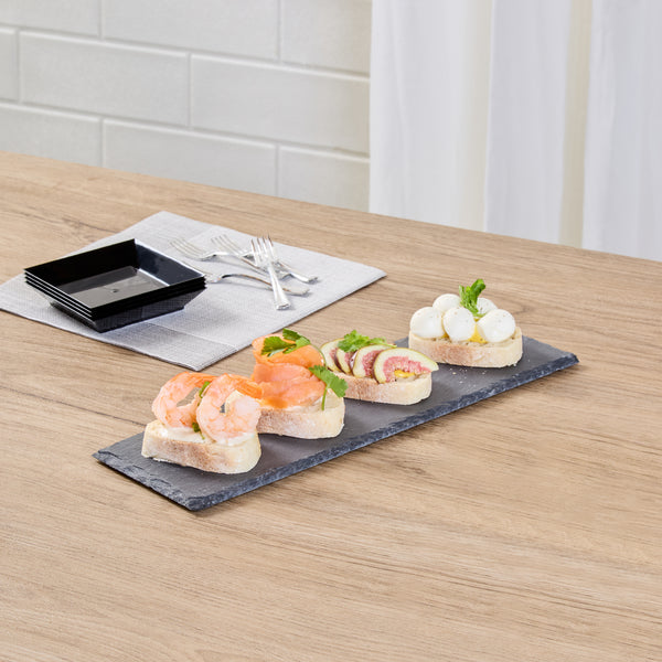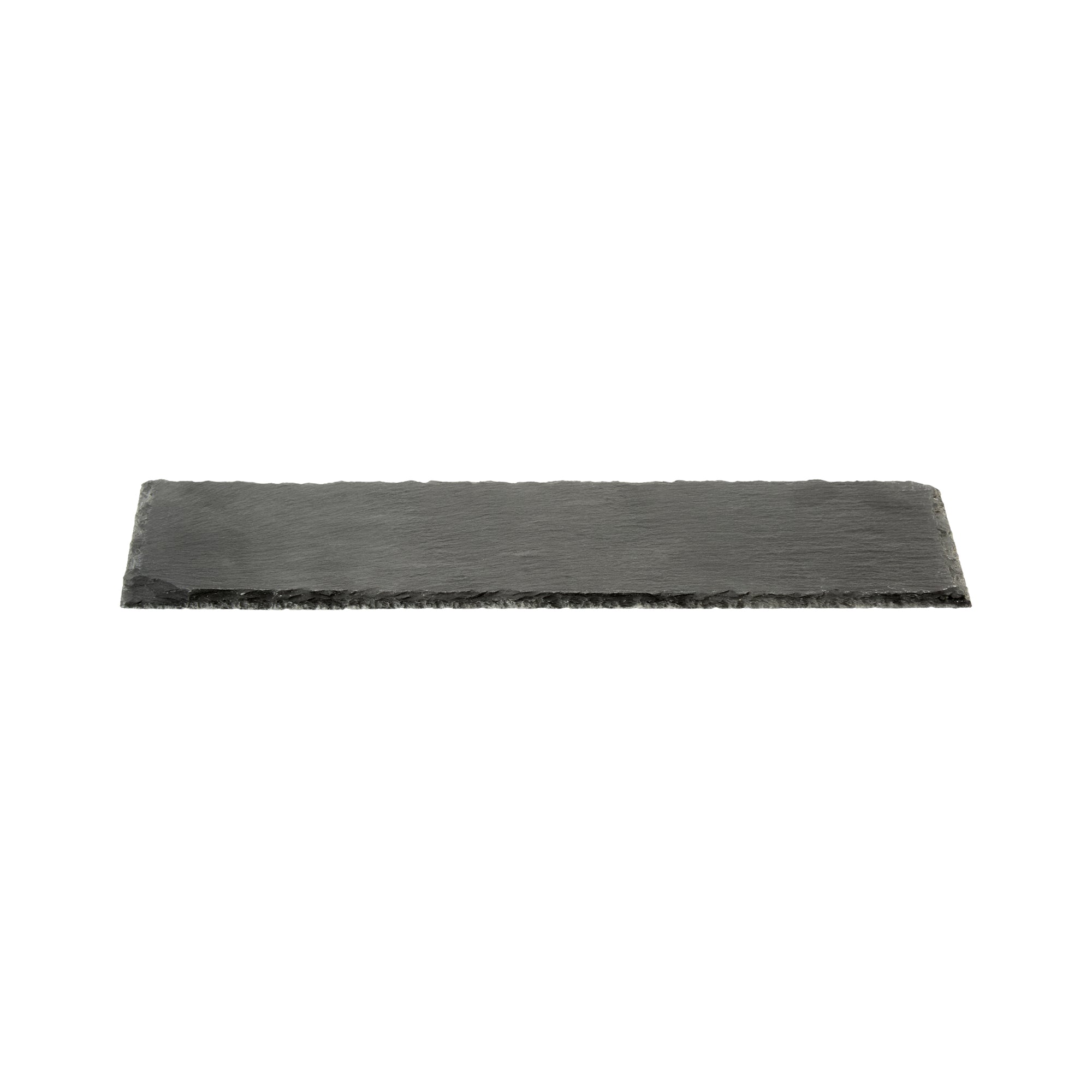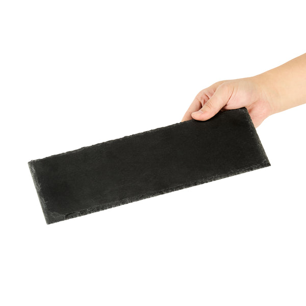 Create visually stunning presentations with this versatile slate cheese board. The Stone Tek Rustic Slate Cheese Board provides a unique and rustic presentation for dishes with its natural slate material, enhancing the visual appeal of your foodservice offerings. Its rectangular shape, measuring 11.8 inches by 3.9 inches, offers ample space for serving appetizers, entrees, or desserts, making it a sleek black serving platter for any occasion. Featuring durable construction, it withstands regular use in bustling environments while the foam feet protect surfaces from scratches, ensuring your tabletops remain pristine. The thickness of the board supports heavy cheese and charcuterie slate board arrangements, while its ability to withstand both hot and cold temperatures ensures flexible use across various menu items. Elevate your dining experience and captivate guests with striking presentations. Each order includes 4 Stone Tek Rustic Slate Cheese Boards.