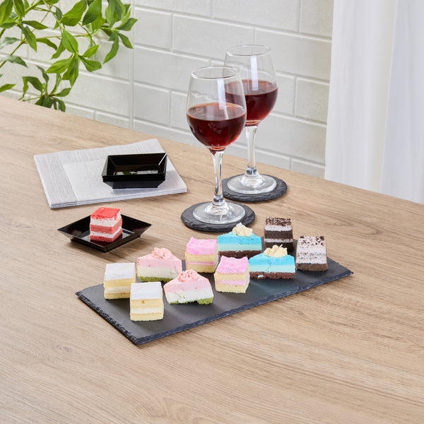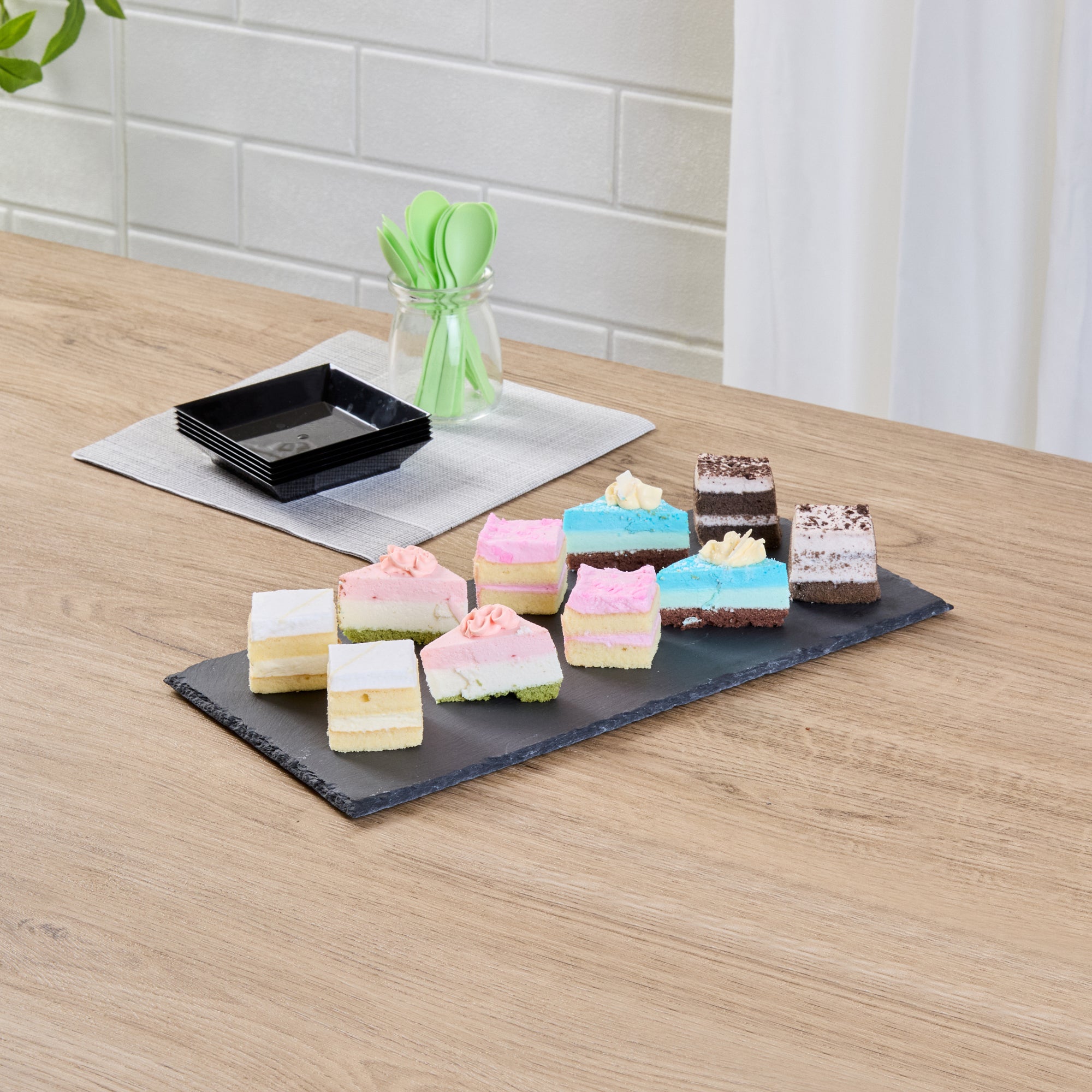 Elevate your dining presentation with versatile slate tableware. The Stone Tek Slate Cheese Board provides a durable and elegant platform for serving artisanal cheeses or charcuterie boards, thanks to its high-quality slate construction. This black serving tray measures 11.8 inches in length and 6 inches in width, offering ample space for appetizers or desserts, making it perfect for upscale restaurants and cafes. With a sophisticated natural black slate finish, the board enhances food presentation, adding a modern aesthetic to any dining experience. The foam feet protect tabletops and counters from scratches, ensuring that your surfaces remain pristine during service. Designed to withstand both hot and cold temperatures, it ensures versatility in foodservice applications. Simplify your service with this elegant solution. Each order includes 4 Stone Tek Slate Cheese Boards.