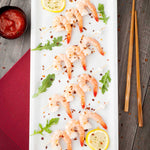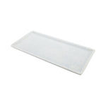 Add elegance to your servingware using our Stone Tek Rectangle White Marble Large Serving Plate. Made from high-quality Italian white marble, this large serving platter has natural gray veining that brings a one-of-a-kind look to your dishes. Featuring raised sides, this marble food tray neatly keeps foods from spilling over while serving guests at restaurants or catered events. Great for withstanding frequent use, this marble platter is break-resistant and scratch-resistant. The surface of this large serving platter provides ample room to hold all kinds of appetizers and cheese spreads. For a quick clean up in between uses, the smooth surface of this marble food tray can be easily wiped down. Measuring 13.75 inches in length by 6.5 inches in width and 0.75 inches in height, this marble platter is sold in a 1 count box.