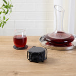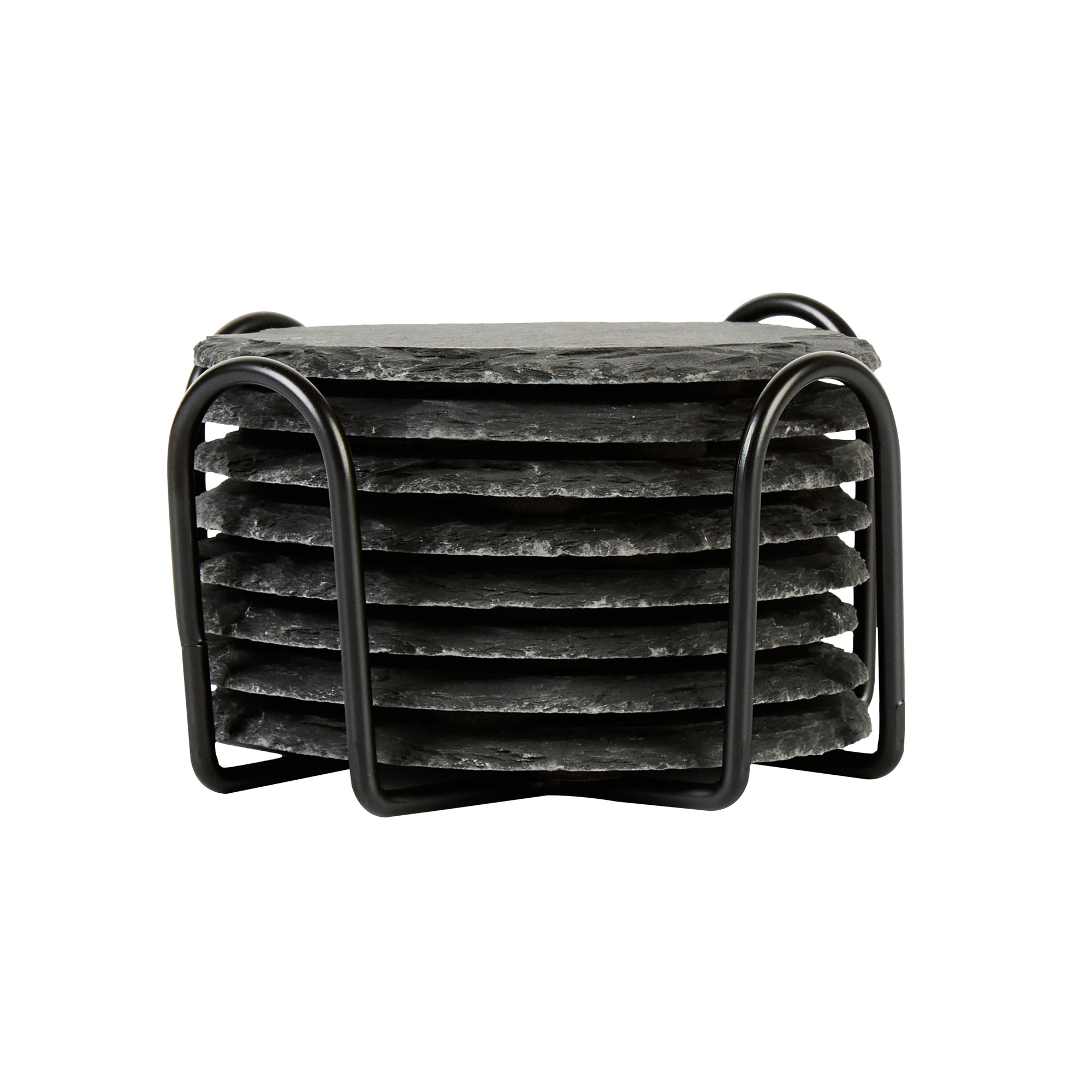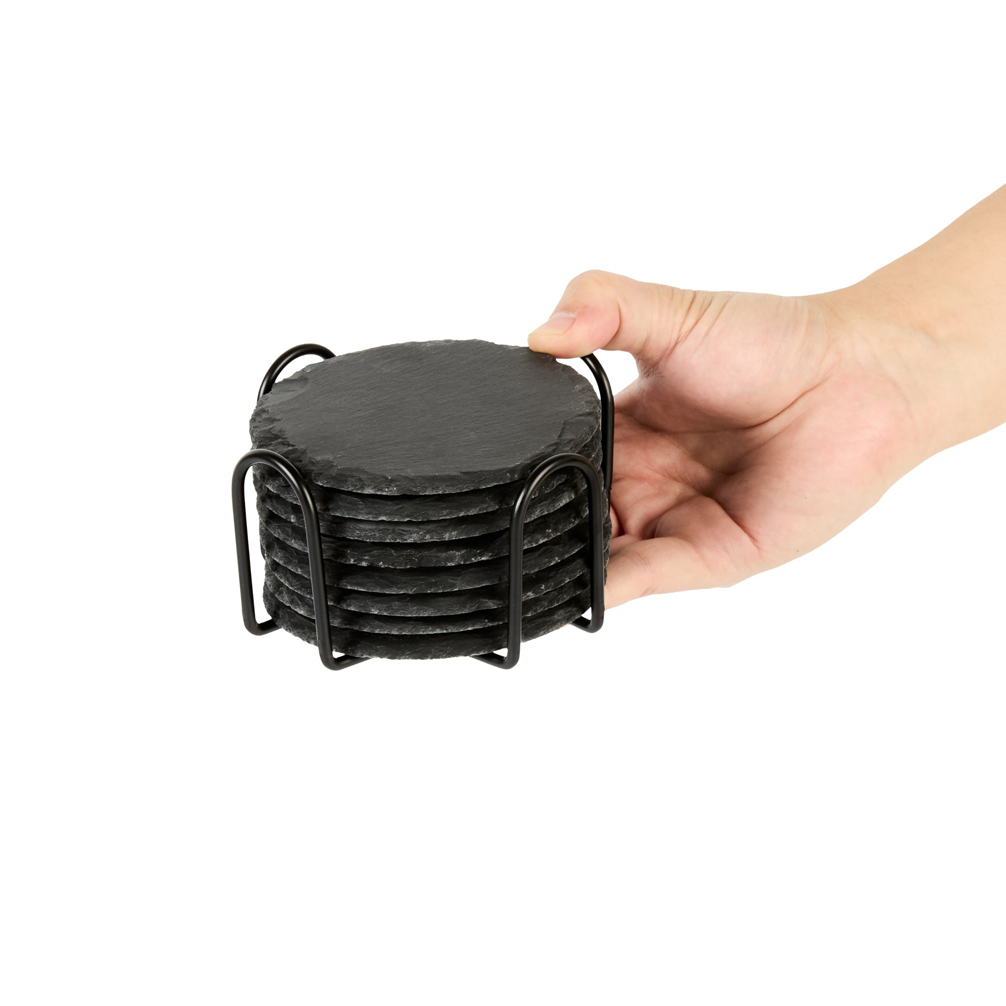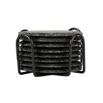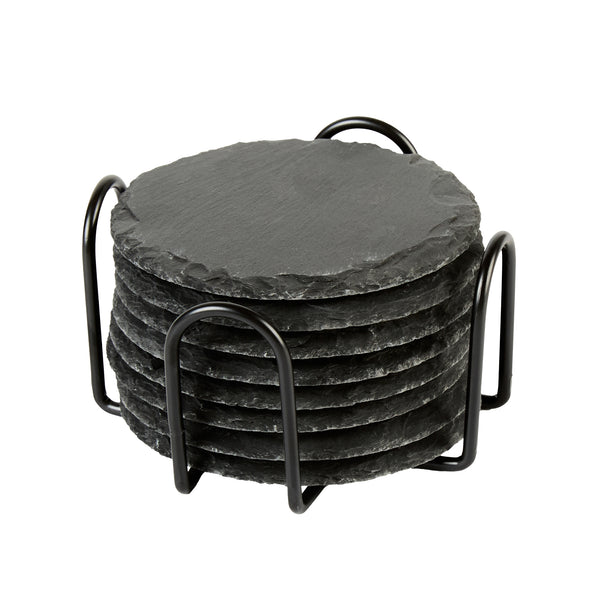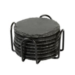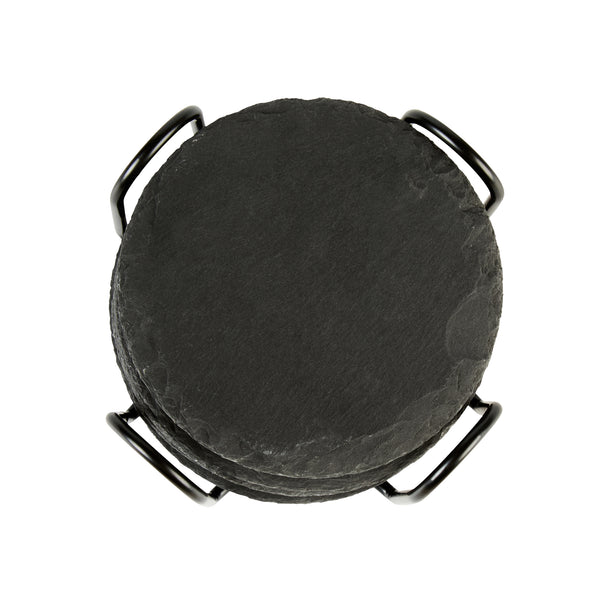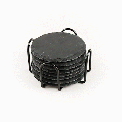 ROUND BLACK SLATE COASTER - WITH IRON HOLDER