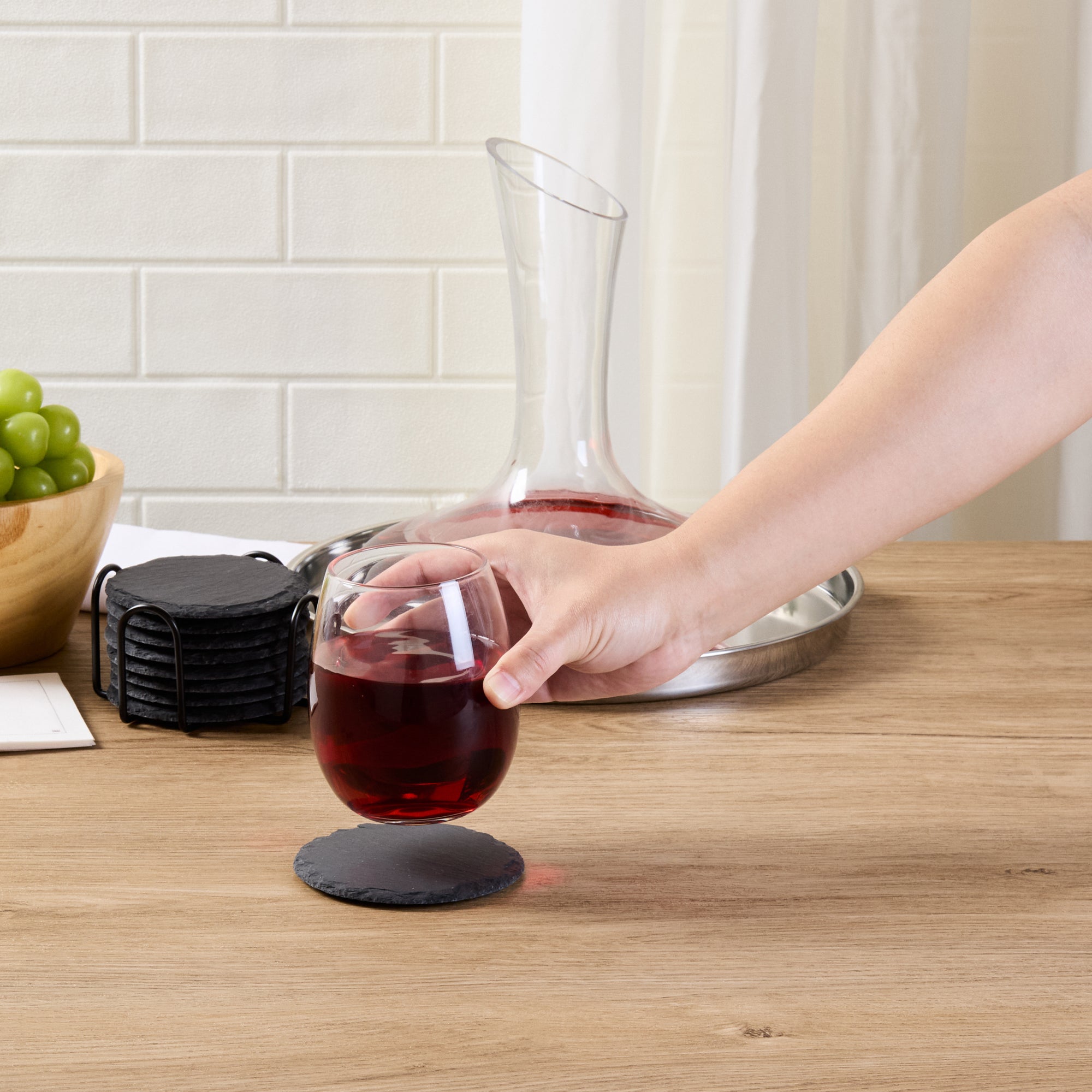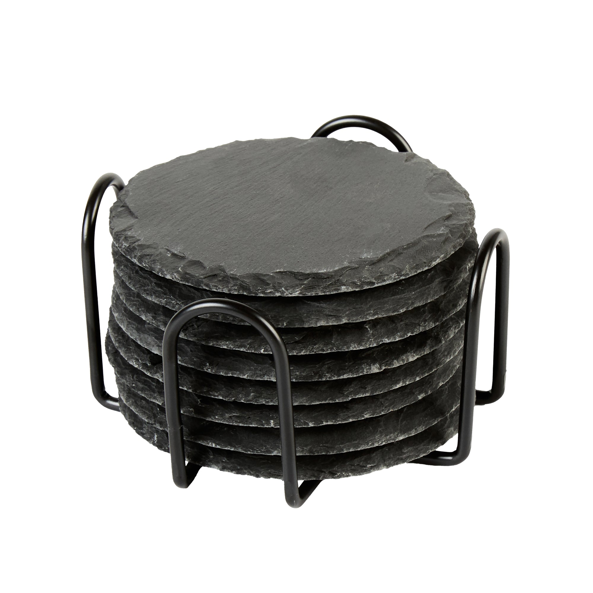 Enhance your beverage service with sophisticated presentation. Stone Tek Rustic Round Slate Coasters offer a natural slate design with rustic edges, perfect for elevating the aesthetic of any dining experience. These round slate coasters come with an included iron holder, ensuring that they are both stylishly organized and easily accessible, making them ideal for upscale restaurants. The foam feet safeguard your surfaces, providing scratch-free protection and maintaining a pristine dining area. With a 4-inch diameter, these slate drink coasters accommodate various glassware sizes, enhancing versatility in drink service. Their non-slip surface prevents glasses from sliding, reducing spill risks and keeping the dining environment clean. Perfect for bars and lounges, these stone drink coasters are also easy to clean, simplifying maintenance and ensuring quick turnaround between guests. Each order includes 1 Stone Tek Rustic Round Slate Coasters.