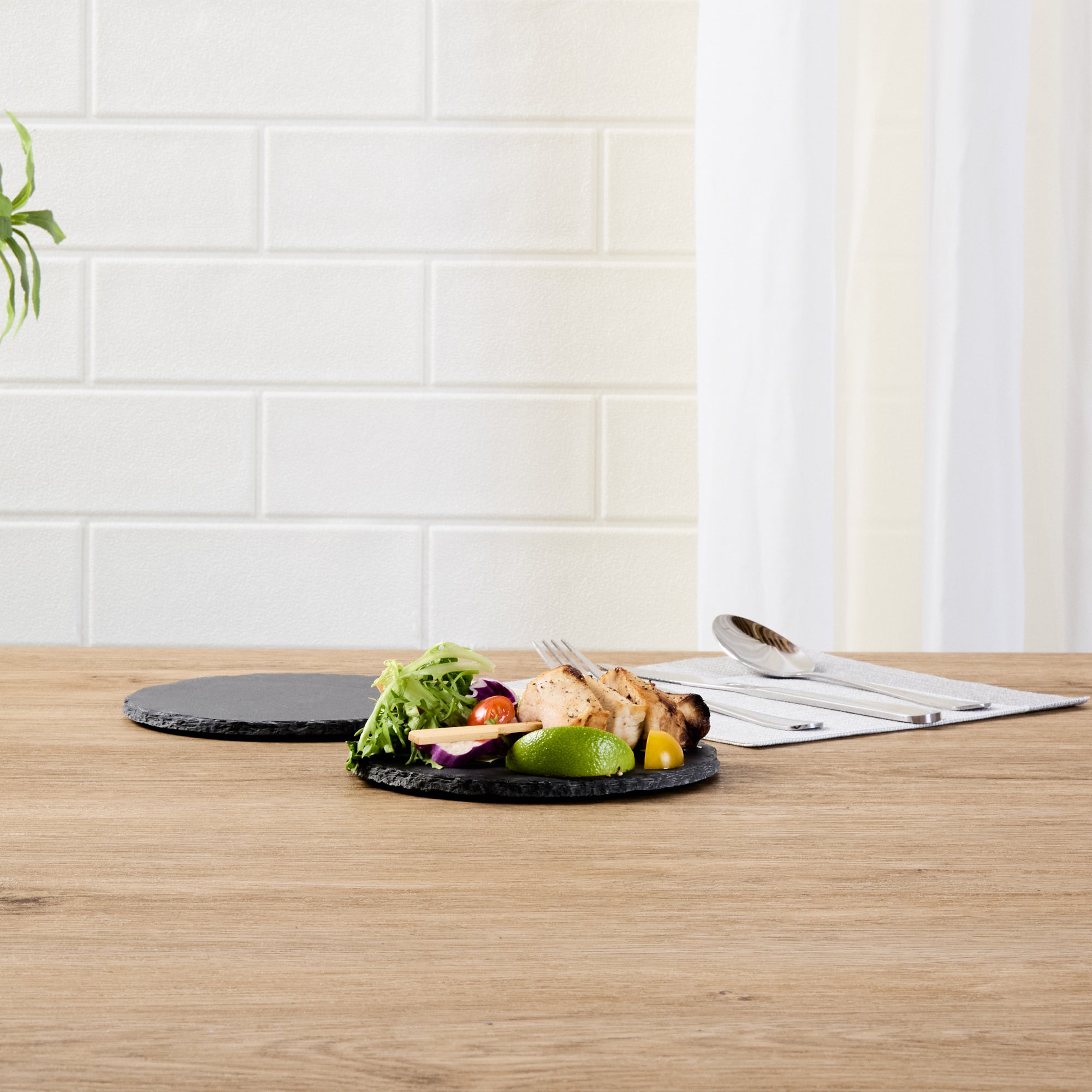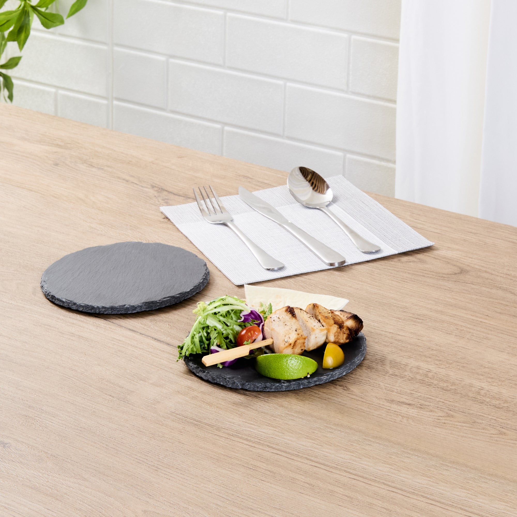 ROUND BLACK SLATE SERVING PLATE