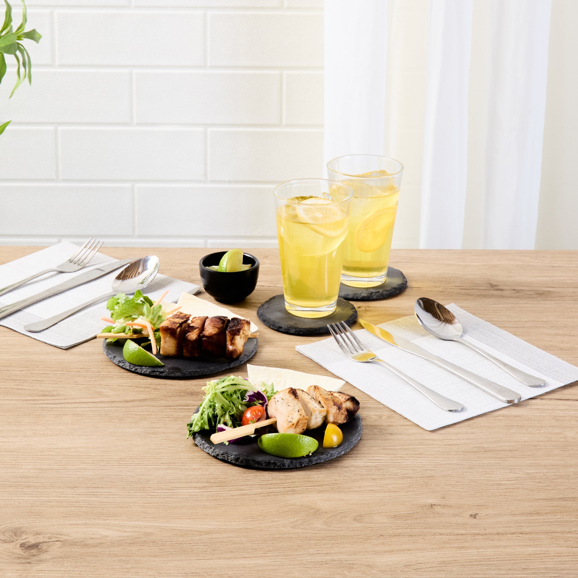 • Natural cut edges add texture to table settings