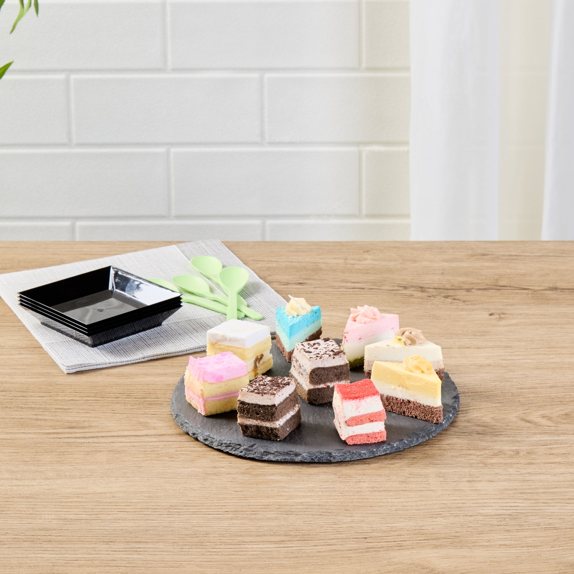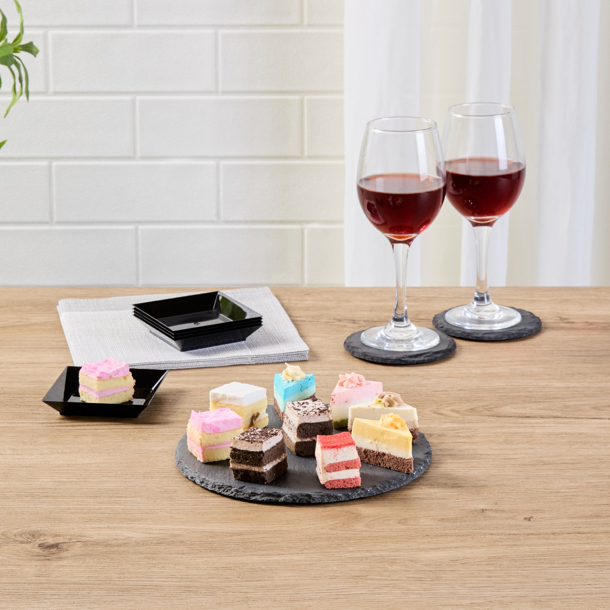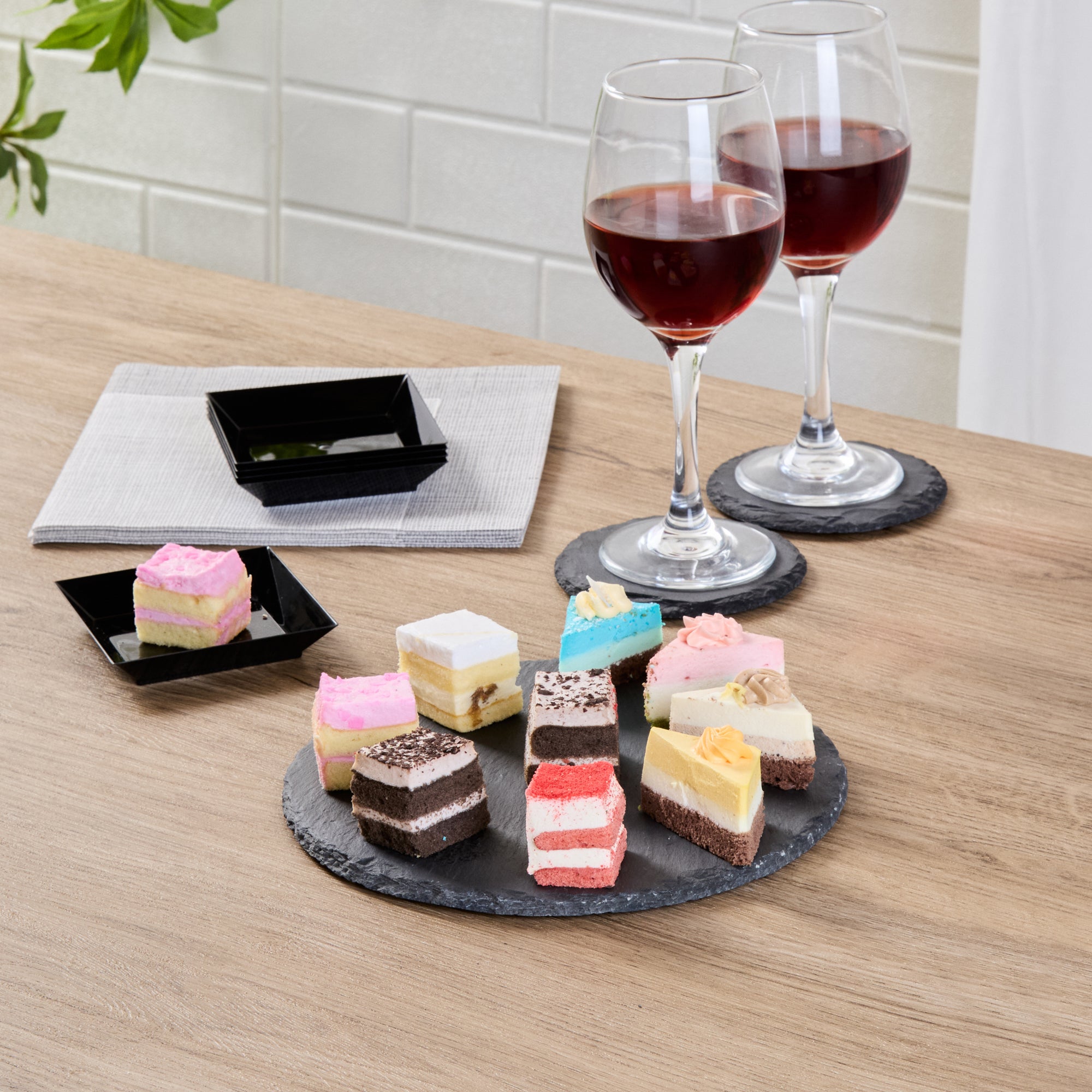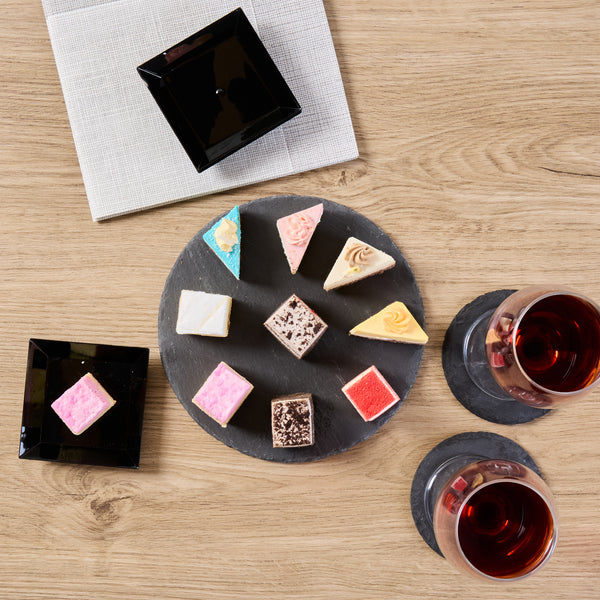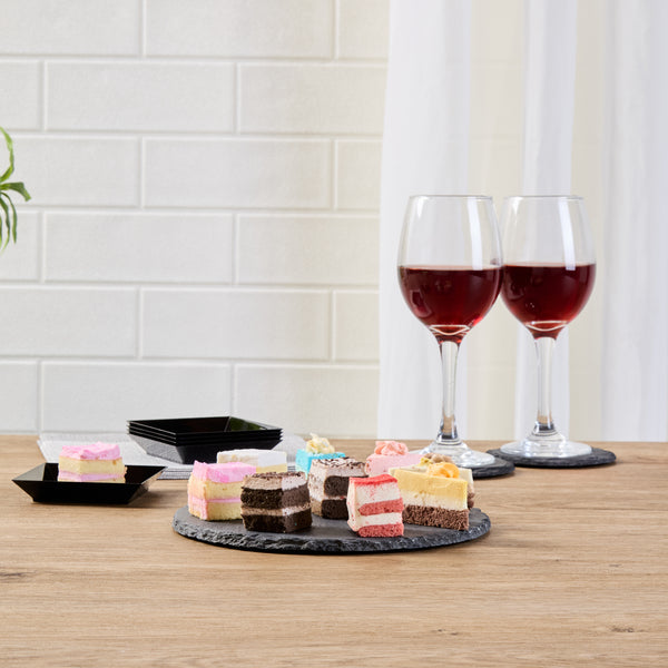 Enhance your presentation with versatile, elegant serveware. The Stone Tek Slate Cheese Board offers a rustic slate platter ideal for displaying charcuterie assortments, thanks to its robust slate material that provides an authentic, rustic appearance. With natural, cut edges, this black slate plate adds an inviting texture to table settings, making it perfect for upscale dining experiences. Equipped with foam feet, it protects surfaces from scratches, ensuring durability and style in every use. Measuring 7.87 inches by 7.87 inches, this board withstands both hot and cold temperatures, offering unmatched versatility for any menu item. Its slate construction not only elevates visual appeal but also ensures it is dishwasher safe, meeting the highest foodservice standards. Choose this slate cheese board to captivate diners and optimize your service with ease. Each order includes 10 Stone Tek Slate Cheese Boards.