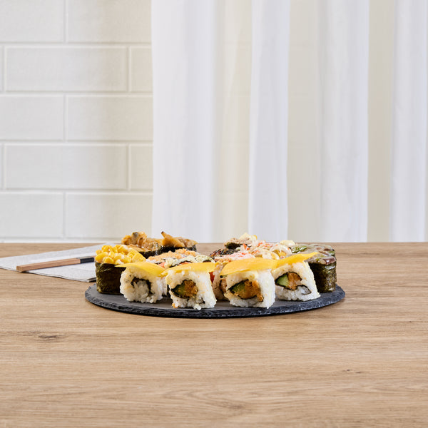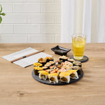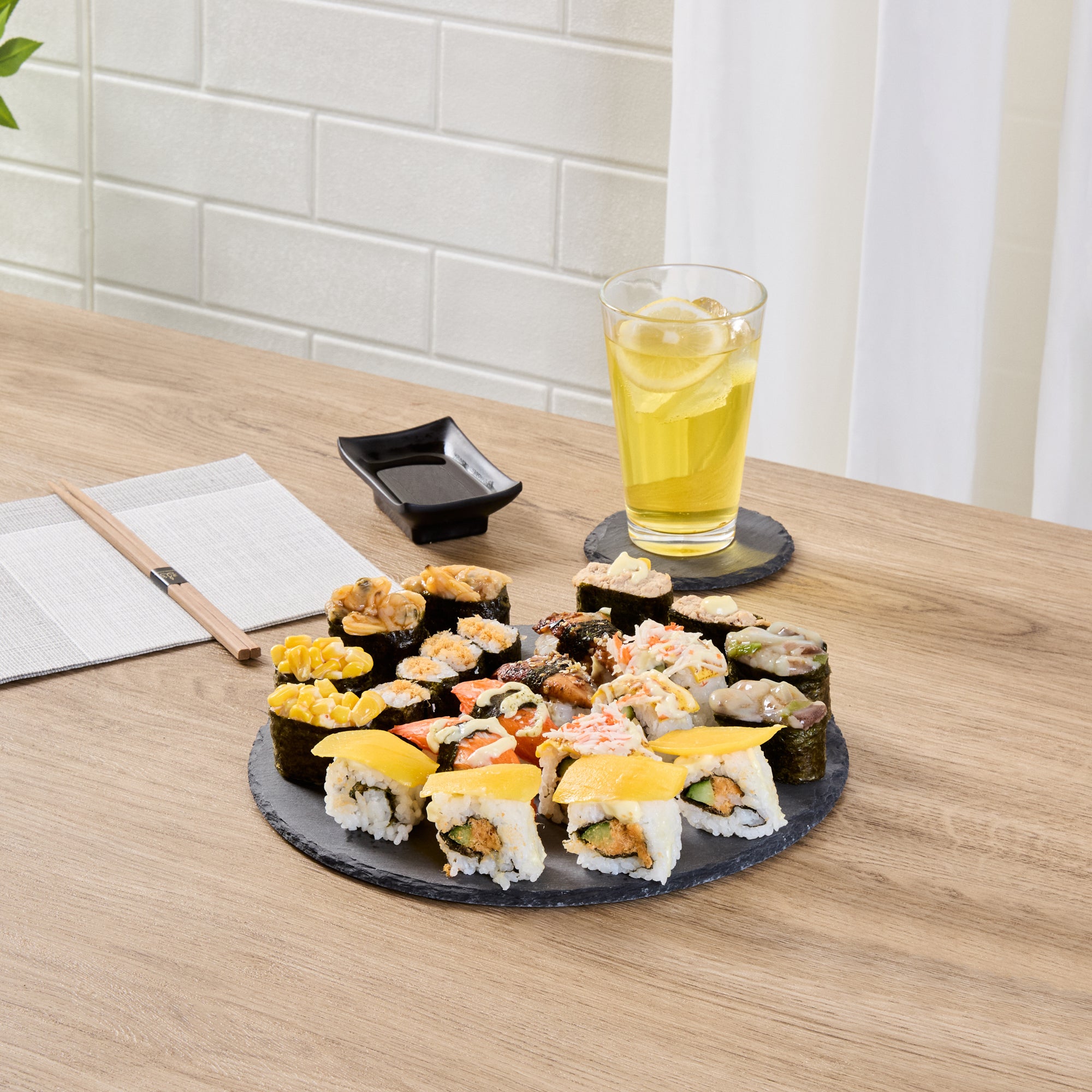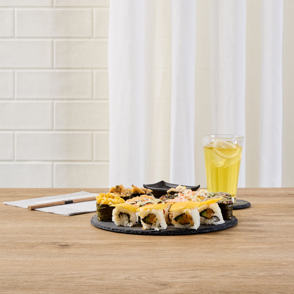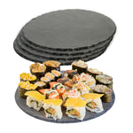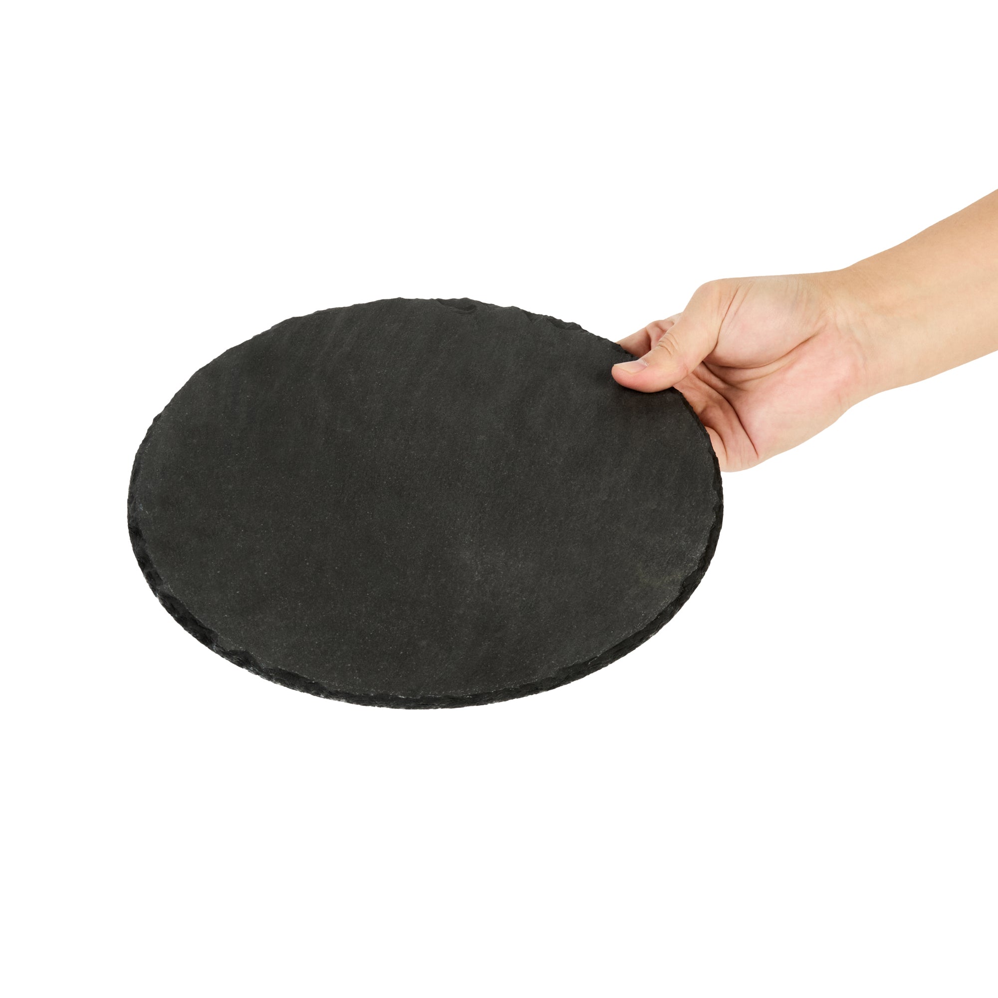 Elevate your presentation with authentic, rustic charm. The Stone Tek Rustic Slate Cheese Board showcases a natural slate construction that withstands both hot and cold foods, offering superior versatility for serving cheese or charcuterie assortments. This slate cheese board is designed with foam feet to protect table tops and counters from unsightly scratches, ensuring a seamless and professional display in your dining or catering settings. The natural edges add a textured elegance to table arrangements, enhancing the visual appeal of your offerings. Measuring 9.84 inches by 9.84 inches, this black stone plate is dishwasher safe, combining ease of maintenance with sustainability. Perfect for casual and formal occasions alike, this round slate dish enriches any culinary presentation with its unique slate material and sleek black color. Each order includes 4 Stone Tek Rustic Slate Cheese Boards.