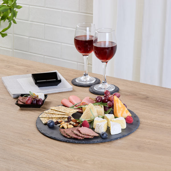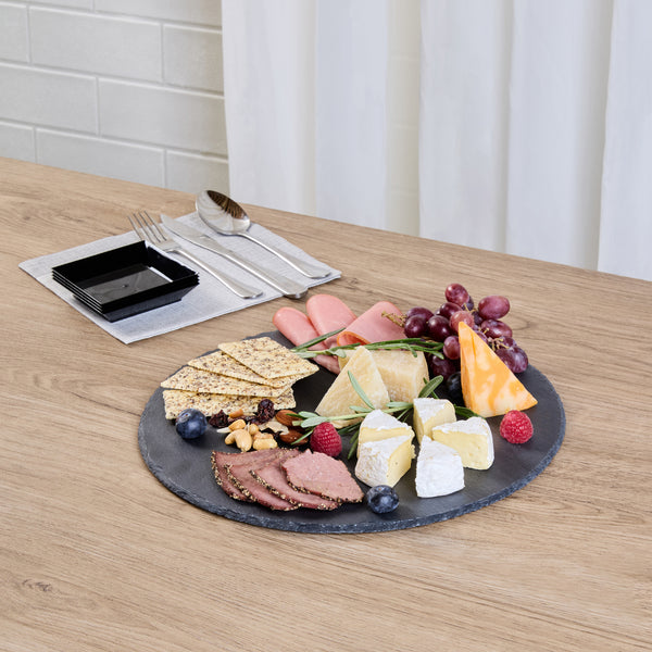 Elevate your presentation with versatile slate serving solutions. The Stone Tek Slate Serving Tray provides a rustic and elegant display, perfect for appetizers, cheeses, and desserts. With its 11.8 inches diameter, this slate serving tray offers ample space for individual and shared portions, enhancing your foodservice operations. Crafted from natural slate, its non-porous surface resists liquid and odor absorption, ensuring hygiene and easy maintenance. Foam feet protect surfaces from scratches, preserving the integrity of your table settings. This cheese slate board withstands both hot and cold temperatures, allowing chefs to showcase a diverse array of dishes. The natural cut edges of the tray add texture and authenticity to rustic table settings, making it an ideal slate platter for parties. Enhance your upscale dining experience with this indispensable serving tray. Each order includes 4 Stone Tek Slate Serving Trays.
