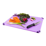 Keep your kitchen organized with our Purple Sure Grip Commercial Grade Non-Slip Cutting Board. With an inch and centimeter ruler embossed on either side, this purple chopping board provides convenient measuring and portion controls of ingredients. Constructed from premium plastic, this cutting board with measurements is durable enough to protect your beautiful countertops and keep high-quality knives sharp at your restaurant, catering event, and more. This large chopping board features 4 non-slip grips on every corner to prevent slipping and sliding on any countertop surface. With a vibrant purple finish, this plastic cutting board keeps your kitchen organized and is intended for cutting allergens. Check out our line of Sure Grip Cutting Boards to complete your kitchen's cutting board collection. This non slip cutting board measures 18 inches long by 24 wide and ships in a 1 count box.