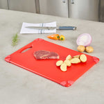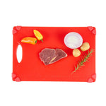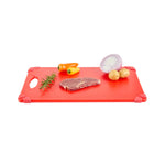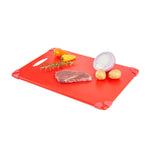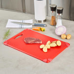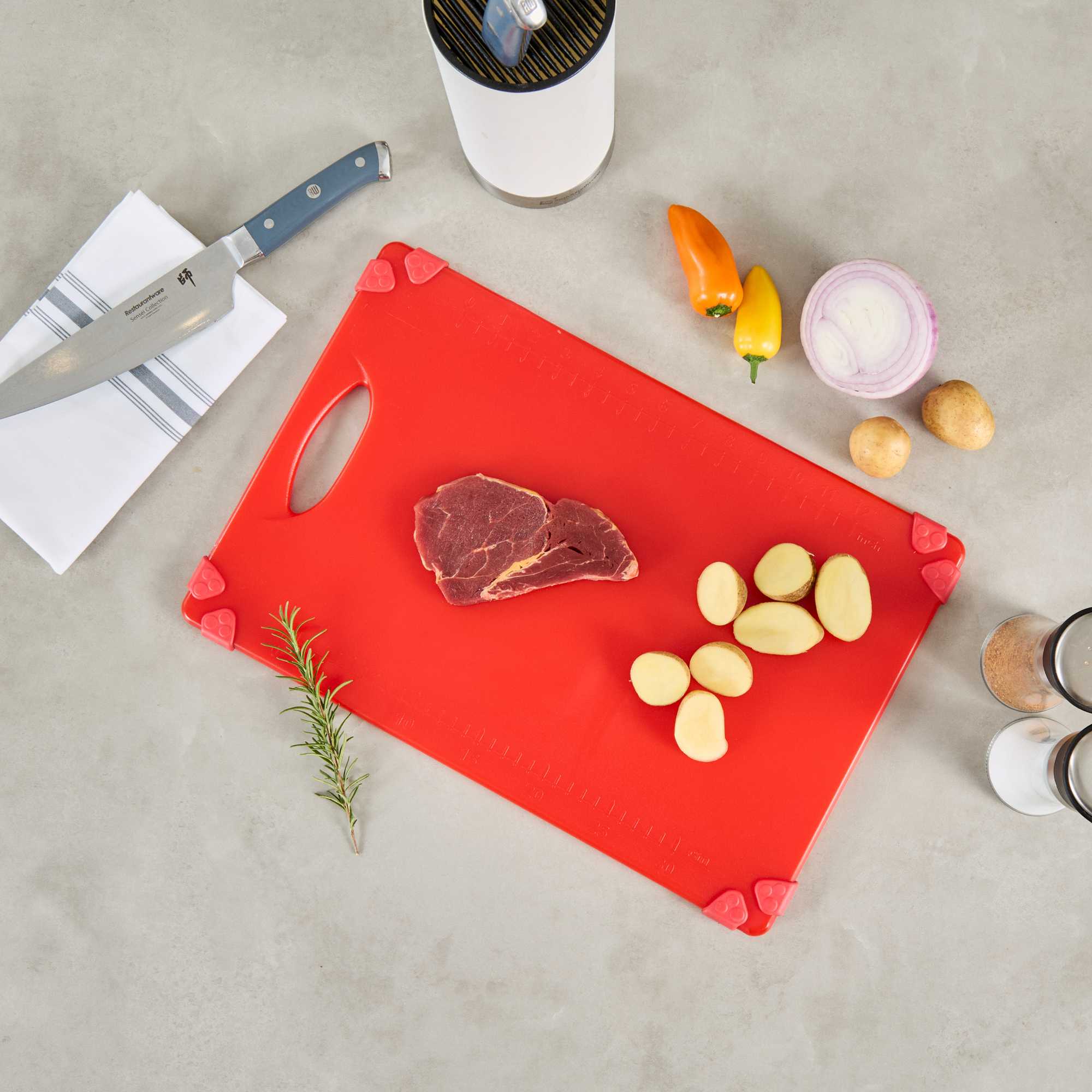 RED PLASTIC CUTTING BOARD - NON-SLIP, MARKERS, CARRYING HANDLE