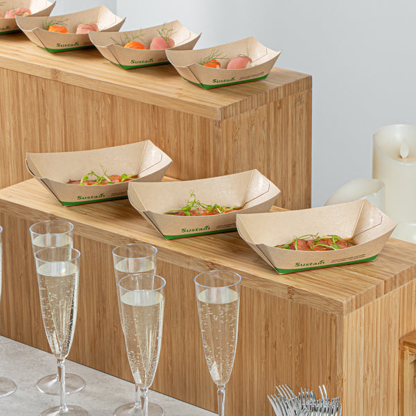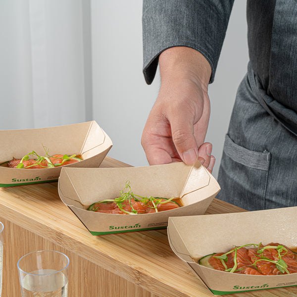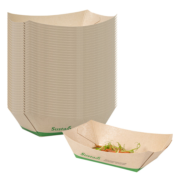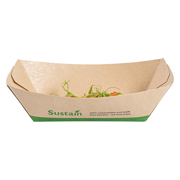 SUSTAIN 1/2 LB BAMBOO PAPER #50 FOOD TRAY / BOAT - COMPOSTABLE