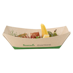 SUSTAIN 1 LB BAMBOO PAPER #100 FOOD TRAY / BOAT - COMPOSTABLE