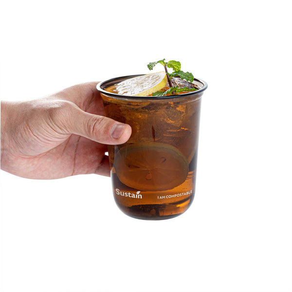 Sustain 12 oz U-Shape Black PLA Plastic Drinking Cup - Compostable, Rounded Bottom - 3 1/2