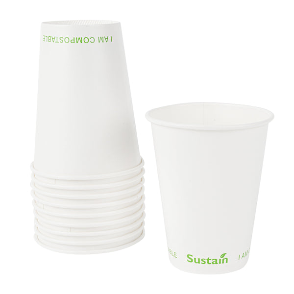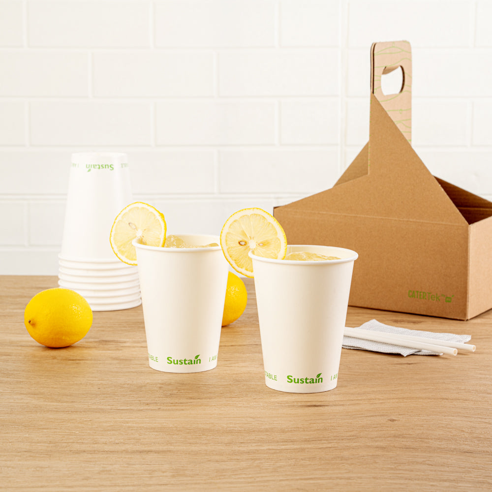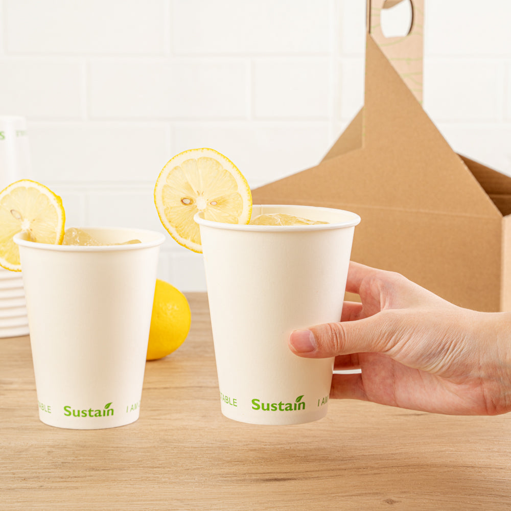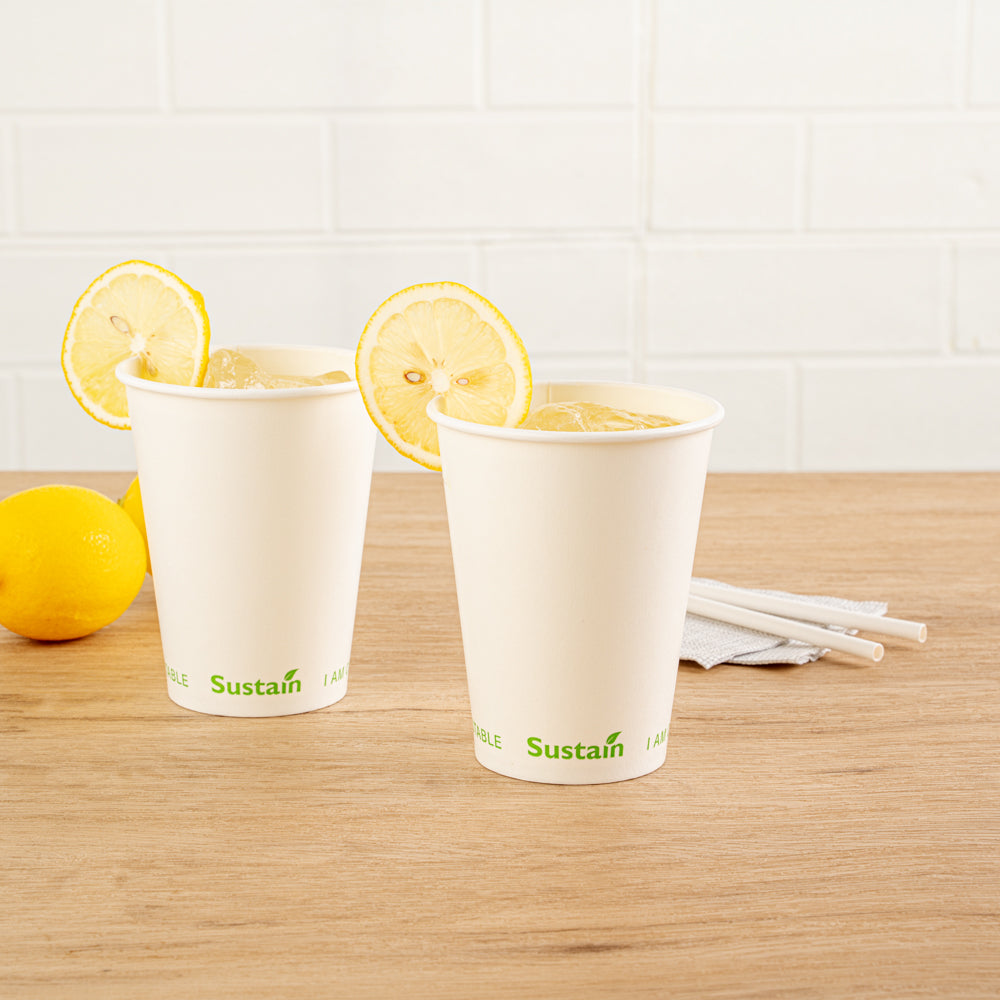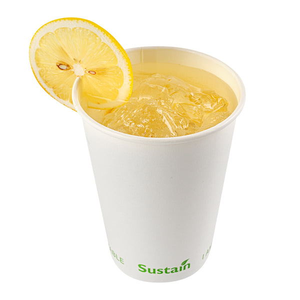 Enhance your beverage service with spill-free, eco-friendly options. Sustain 12 Ounce Leak-Resistant Compostable Cold Cups feature a PLA lining that creates a moistureproof barrier, preventing leaks and ensuring every drink stays contained. Made from compostable materials, these cups support sustainable practices, reducing your environmental footprint and aligning with eco-conscious initiatives. With a 12-ounce capacity, these cups are perfect for serving standard-sized cold beverages, catering to customer preferences in quick-service restaurants and cafés. The greaseproof lining is ideal for oily or creamy drinks, maintaining the cup's integrity and appearance. Their white paper construction offers a clean, professional look suitable for any foodservice setting, while the dimensions of 3.54 inches by 3.54 inches by 4.33 inches guarantee compatibility with standard cup holders and lids, enhancing operational efficiency. Each order includes 1000 Sustain 12 Ounce Leak-Resistant Compostable Cold Cups.