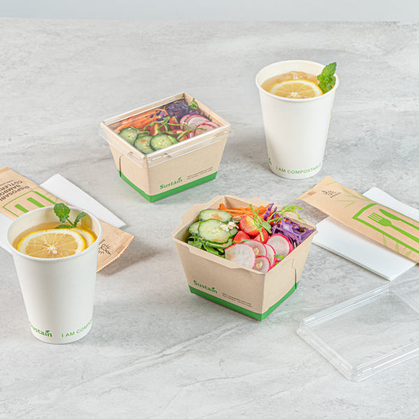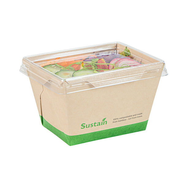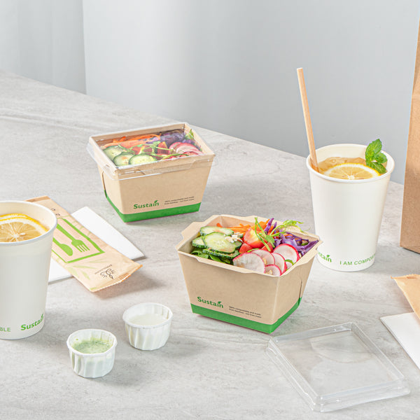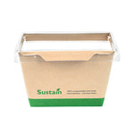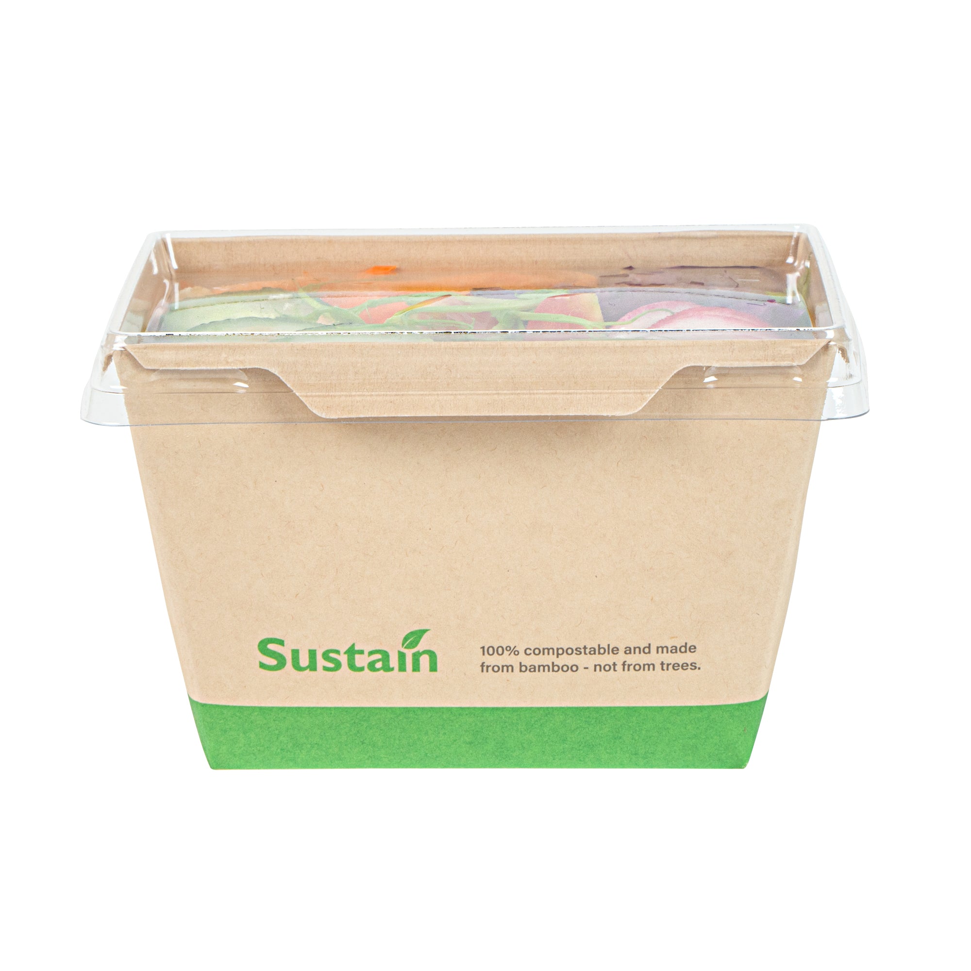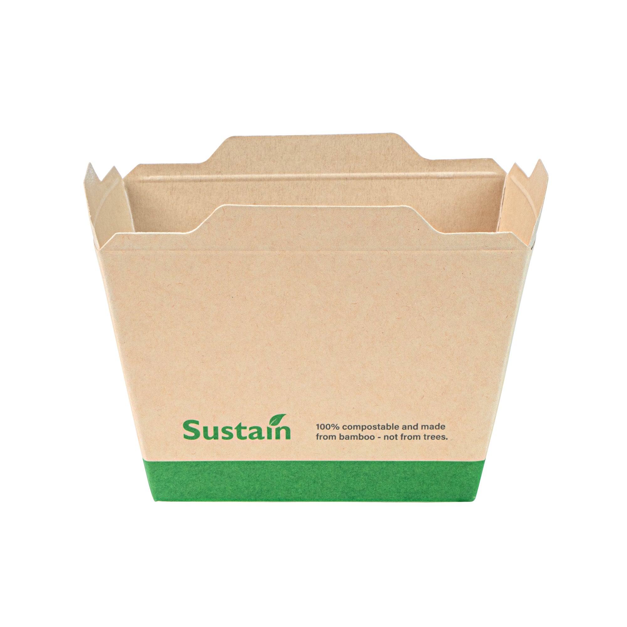 Ensure mess-free transport with a secure food container. The Sustain Leakproof Kraft Paper Compostable Food Container combines eco-friendly design with advanced functionality, featuring a PLA lining that prevents leaks for a seamless service experience. Its click-lock mechanism ensures a secure closure, keeping contents intact during transportation, making it ideal for busy restaurants offering takeout or delivery. Constructed from sturdy bamboo paper, this leakproof bamboo container offers a sustainable alternative to traditional packaging while maintaining structural integrity. Measuring 4.3 inches in length, 3.3 inches in width, and 2.8 inches in height, enhancing operational efficiency. Opt for an environmentally responsible choice with this versatile container, perfect for delis, cafes, and catering events that prioritize sustainability. Each order includes 50 Sustain Leakproof Kraft Paper Compostable Food Containers.