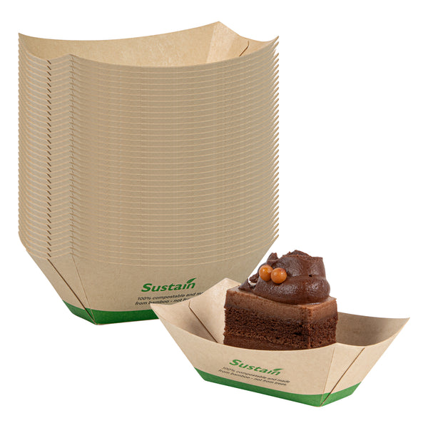 SUSTAIN 2 OZ BAMBOO PAPER FOOD TRAY / BOAT - COMPOSTABLE
