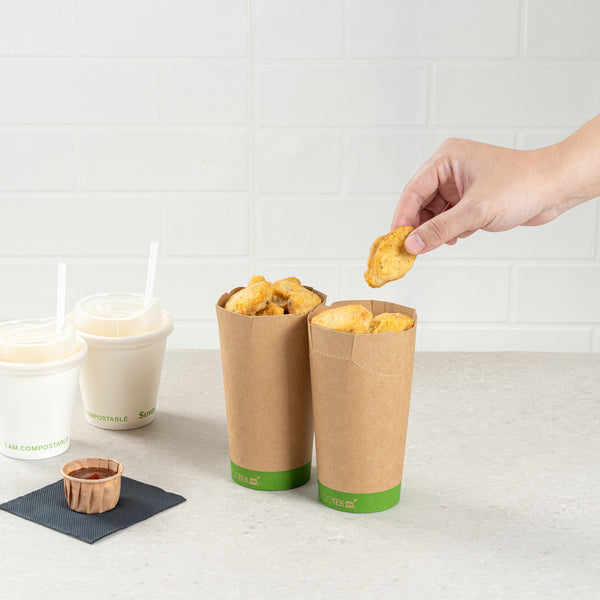 20 OZ ROUND KRAFT PAPER TO GO FRY CUP - WITH PLA LINING, COMPOSTABLE