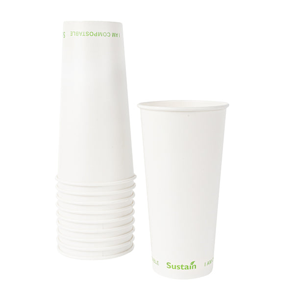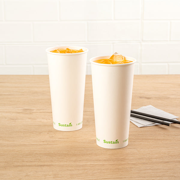 22 OZ WHITE PAPER COLD CUP - PLA LINING, COMPOSTABLE