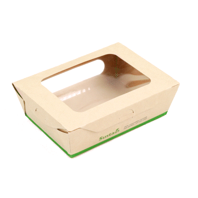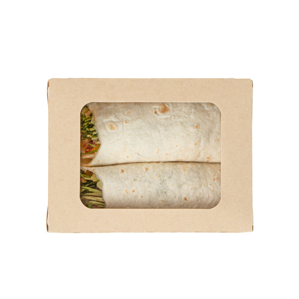 - Clear PLA windows improve visibility of packaged goods