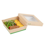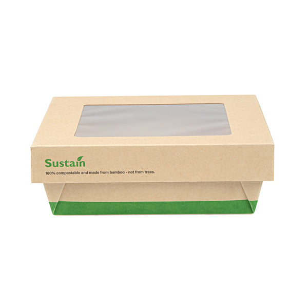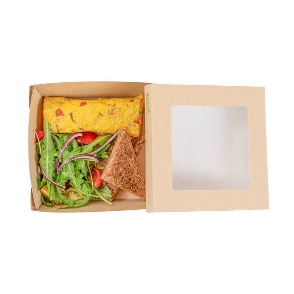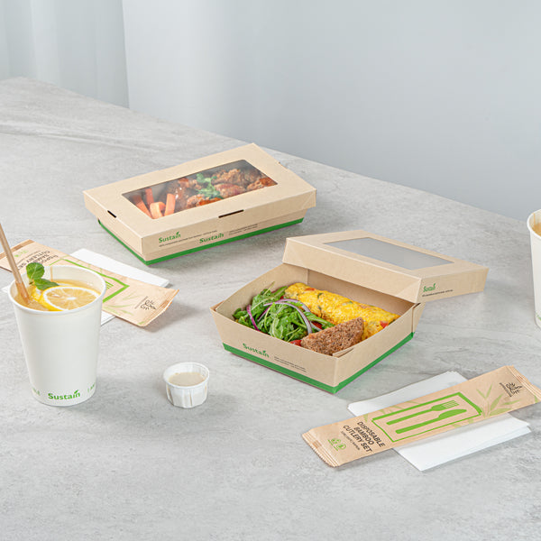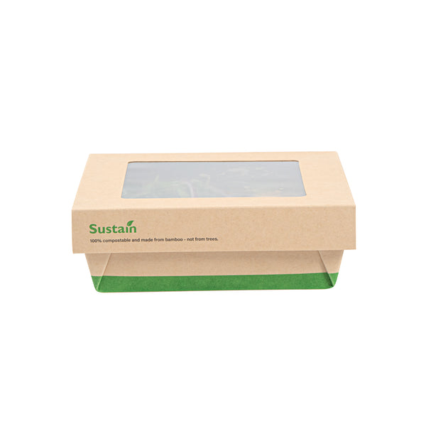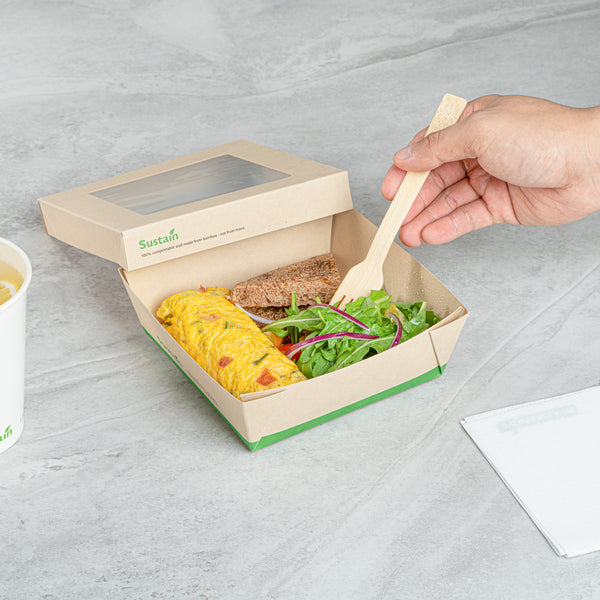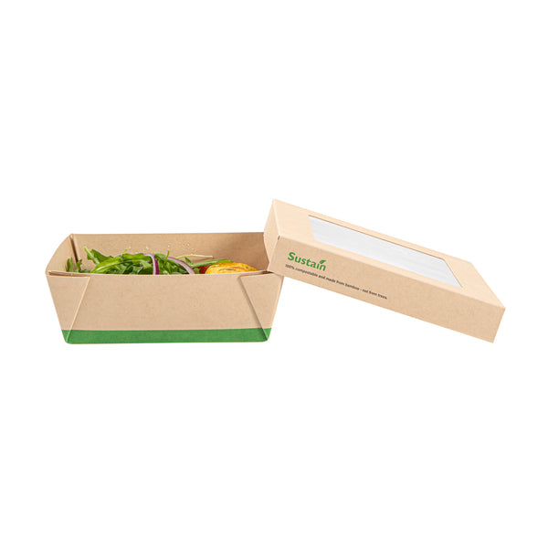 Enhance your foodservice efficiency with leak-free takeout solutions. The Sustain Leak-Resistant Compostable Take Out Box combines practicality and sustainability with its PLA lining that prevents leaks, ensuring a hassle-free service for your establishment. Crafted from sustainable paper, this biodegradable container is commercially compostable, offering an eco-friendly disposal option that aligns with green initiatives. The clear PLA window allows customers to quickly view the contents, streamlining the selection process and enhancing the presentation of your culinary creations. With dimensions of 6.1 inches in length and 2 inches in height, these disposable food boxes are perfectly sized to accommodate a variety of meals, while the kraft color adds a natural touch to your packaging. Elevate your brand’s commitment to sustainability and customer satisfaction with this compostable take out box. Sold in a 200 count box.