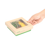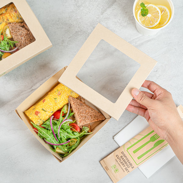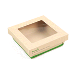 - Clear PLA windows improve visibility of packaged goods