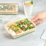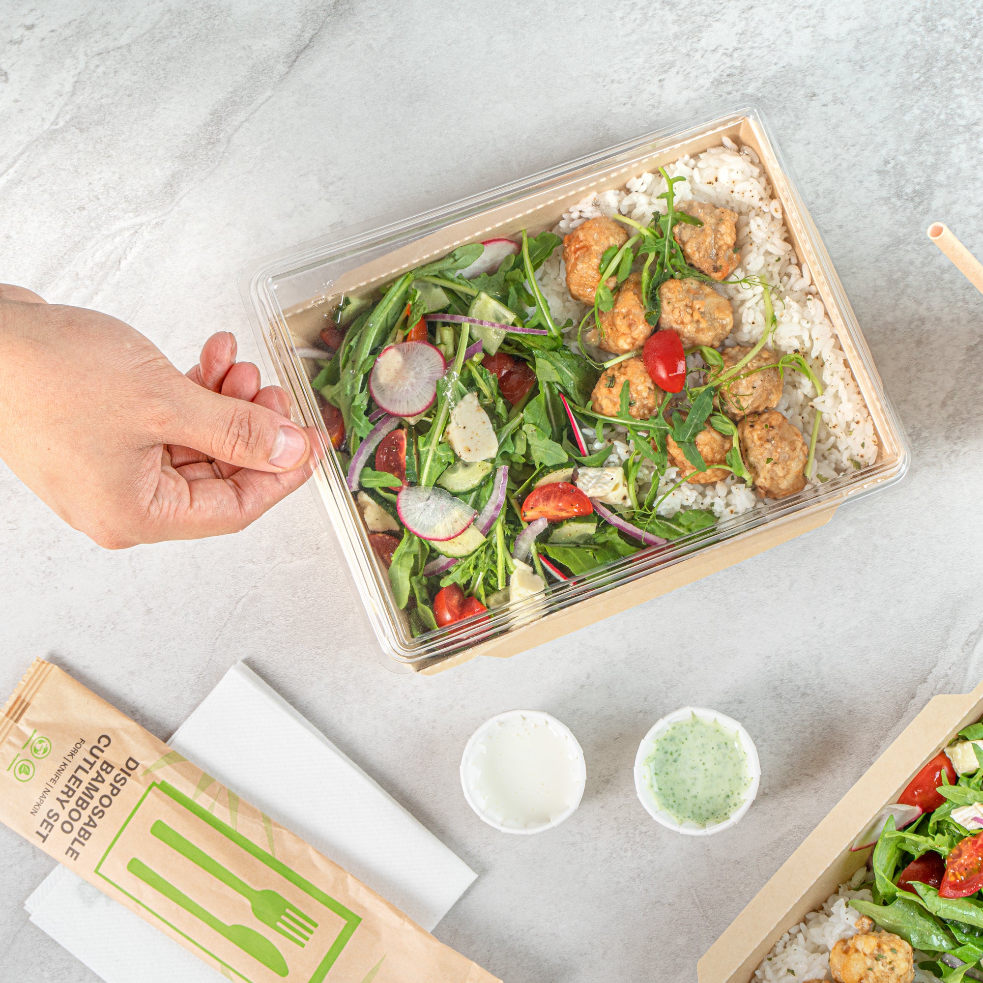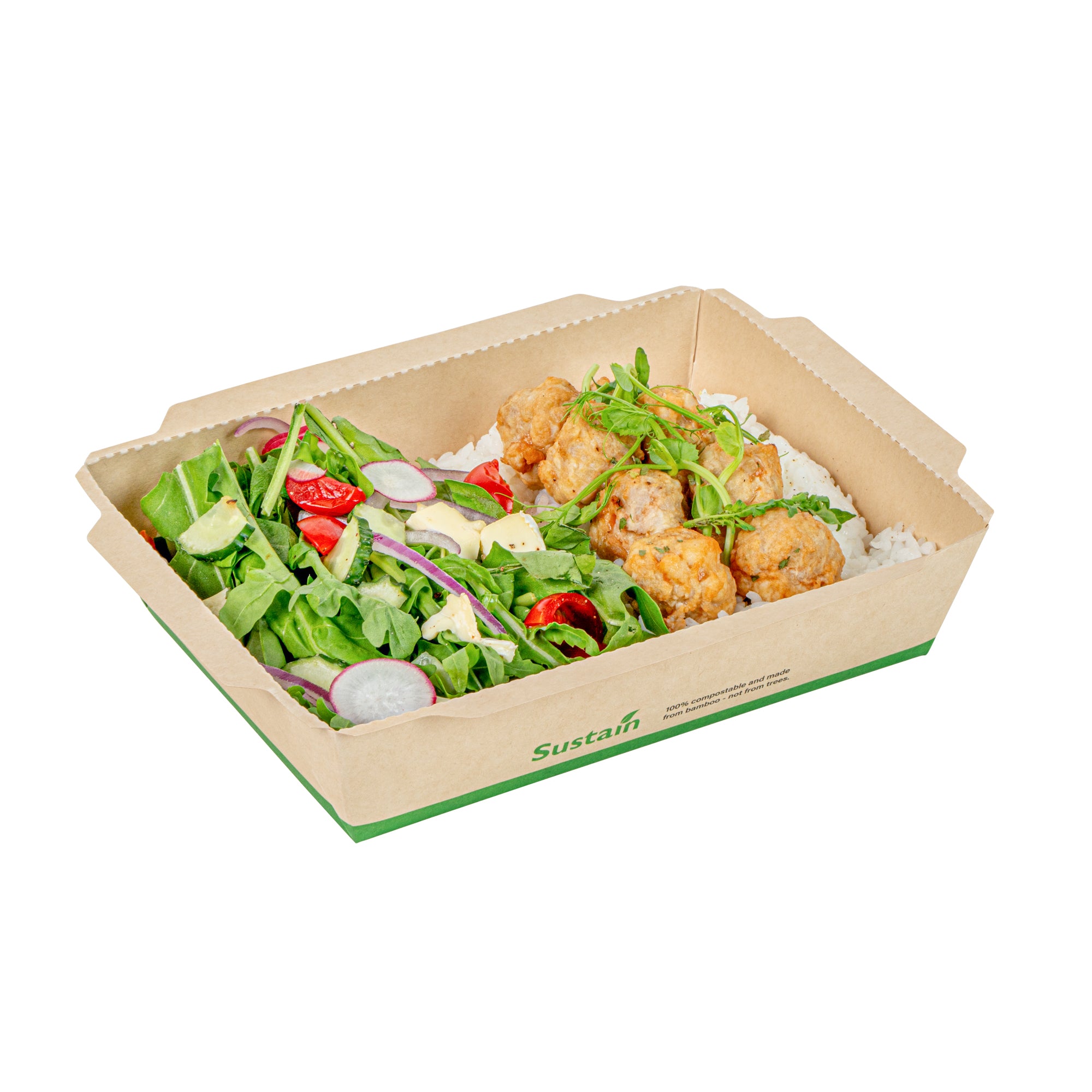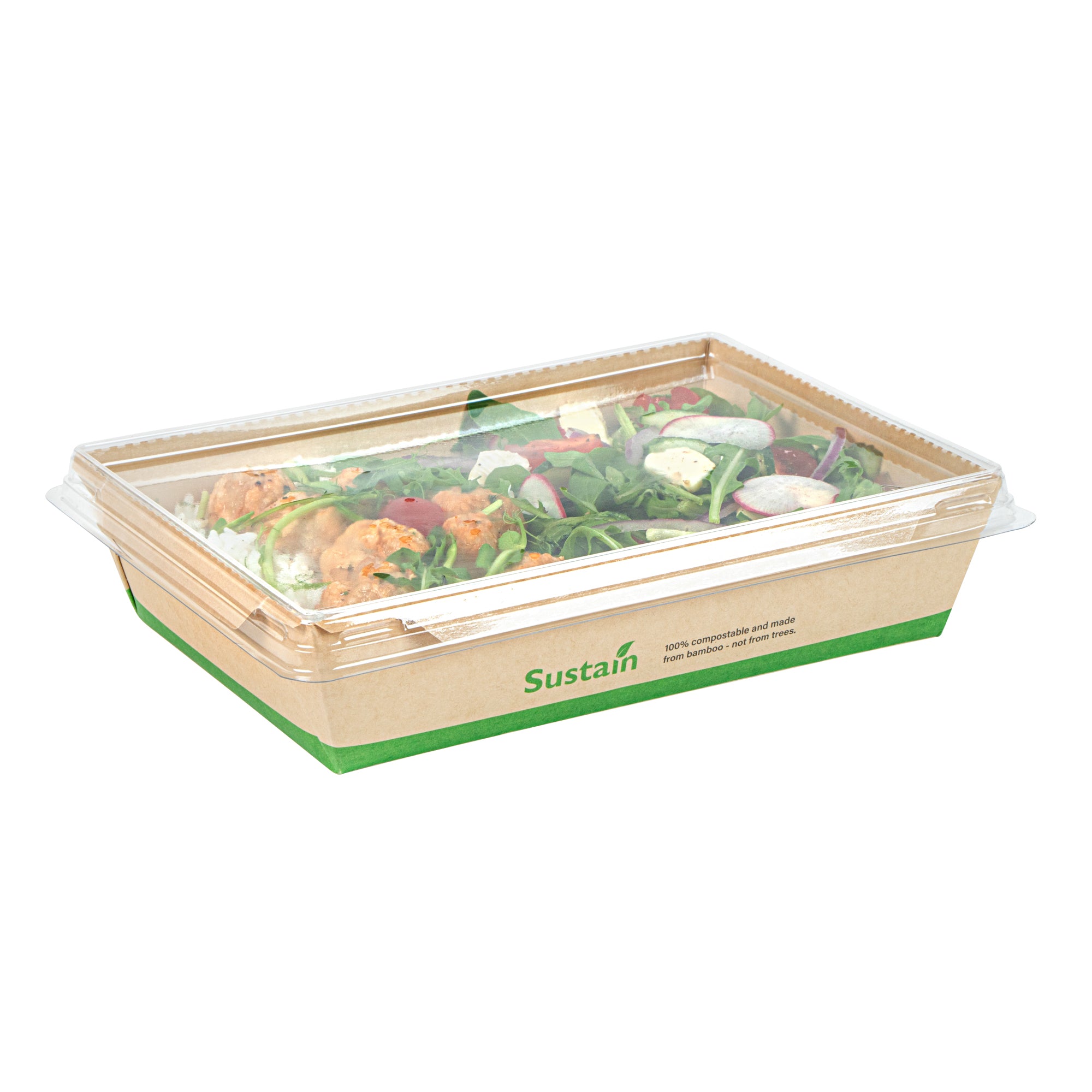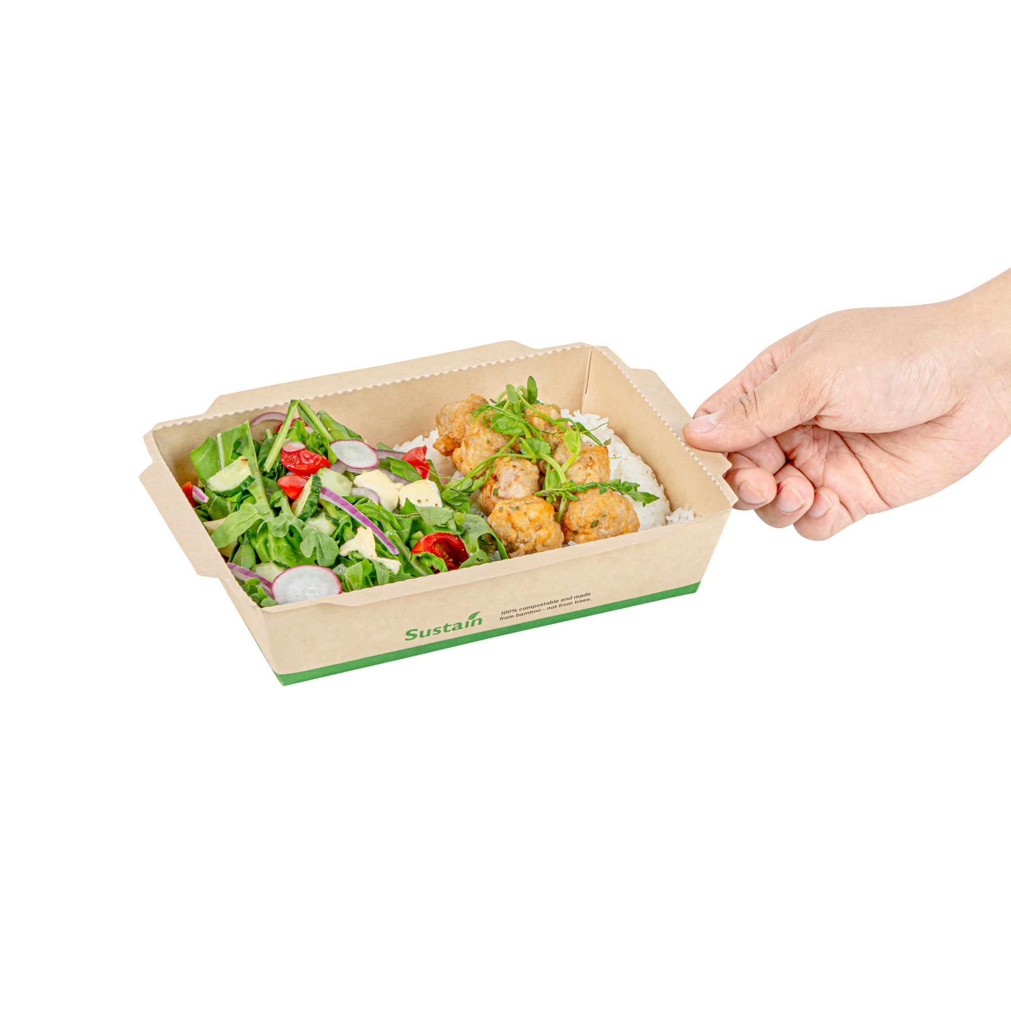 Enhance meal presentation with a reliable takeout food container. The Sustain Leakproof Kraft Click Lock Takeout Food Container, made from sustainable paper with a protective PLA lining, prevents unwanted leaks, ensuring food remains intact during transport. Its innovative click lock mechanism secures contents, making it ideal for delivery services looking to maintain food integrity. With a generous 34-ounce capacity and greaseproof construction, this compostable takeout container is perfect for serving generous portions without compromising quality or appearance. Measuring 7.5 inches in length and 5.5 inches in width, it easily accommodates a variety of dishes. As a compostable paper solution, it supports eco-friendly disposal practices, appealing to environmentally conscious businesses. Make sure your meals are delivered securely and sustainably by choosing this food container. Each order includes 200 Sustain Leakproof Kraft Click Lock Takeout Food Containers.