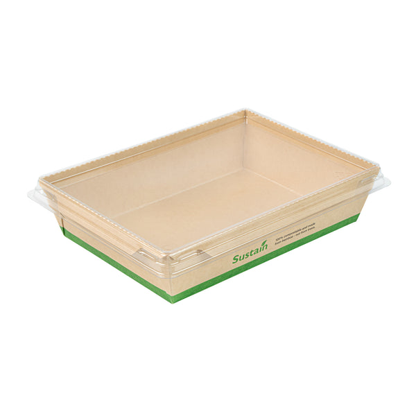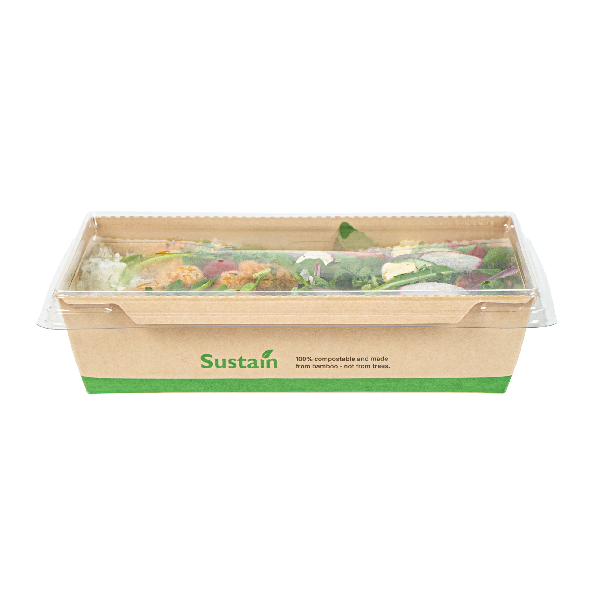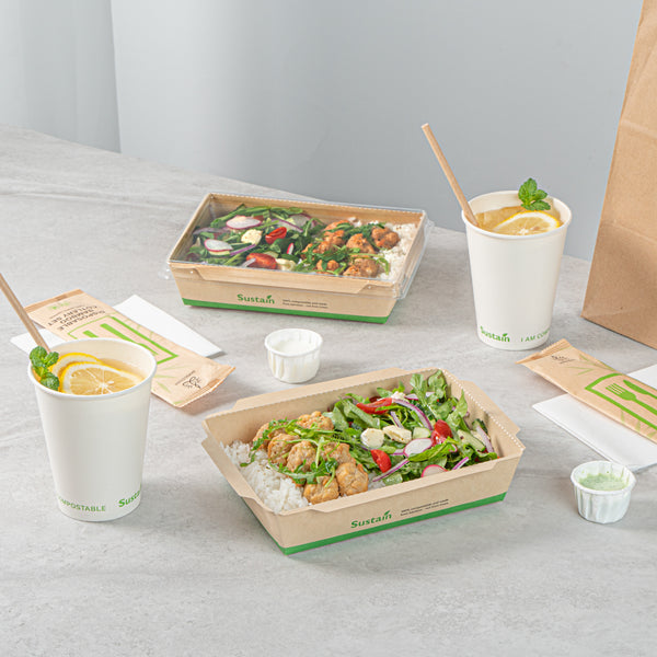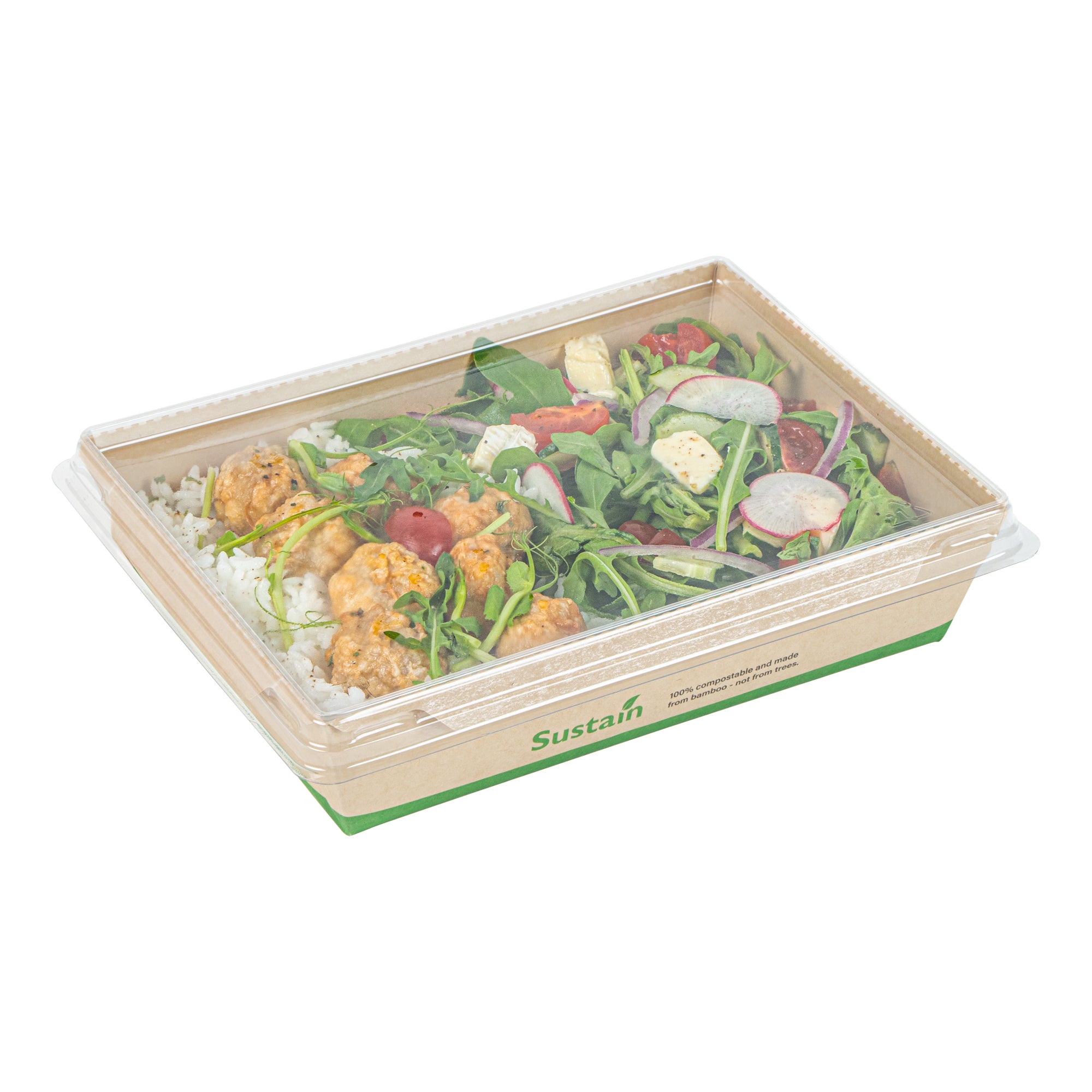 Enhance meal presentation with a reliable takeout food container. The Sustain Leakproof Kraft Click Lock Takeout Food Container, made from sustainable paper with a protective PLA lining, prevents unwanted leaks, ensuring food remains intact during transport. Its innovative click lock mechanism secures contents, making it ideal for delivery services looking to maintain food integrity. With a generous 34-ounce capacity and greaseproof construction, this compostable takeout container is perfect for serving generous portions without compromising quality or appearance. Measuring 7.5 inches in length and 5.5 inches in width, it easily accommodates a variety of dishes. As a compostable paper solution, it supports eco-friendly disposal practices, appealing to environmentally conscious businesses. Make sure your meals are delivered securely and sustainably by choosing this food container. Each order includes 50 Sustain Leakproof Kraft Click Lock Takeout Food Containers.