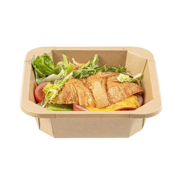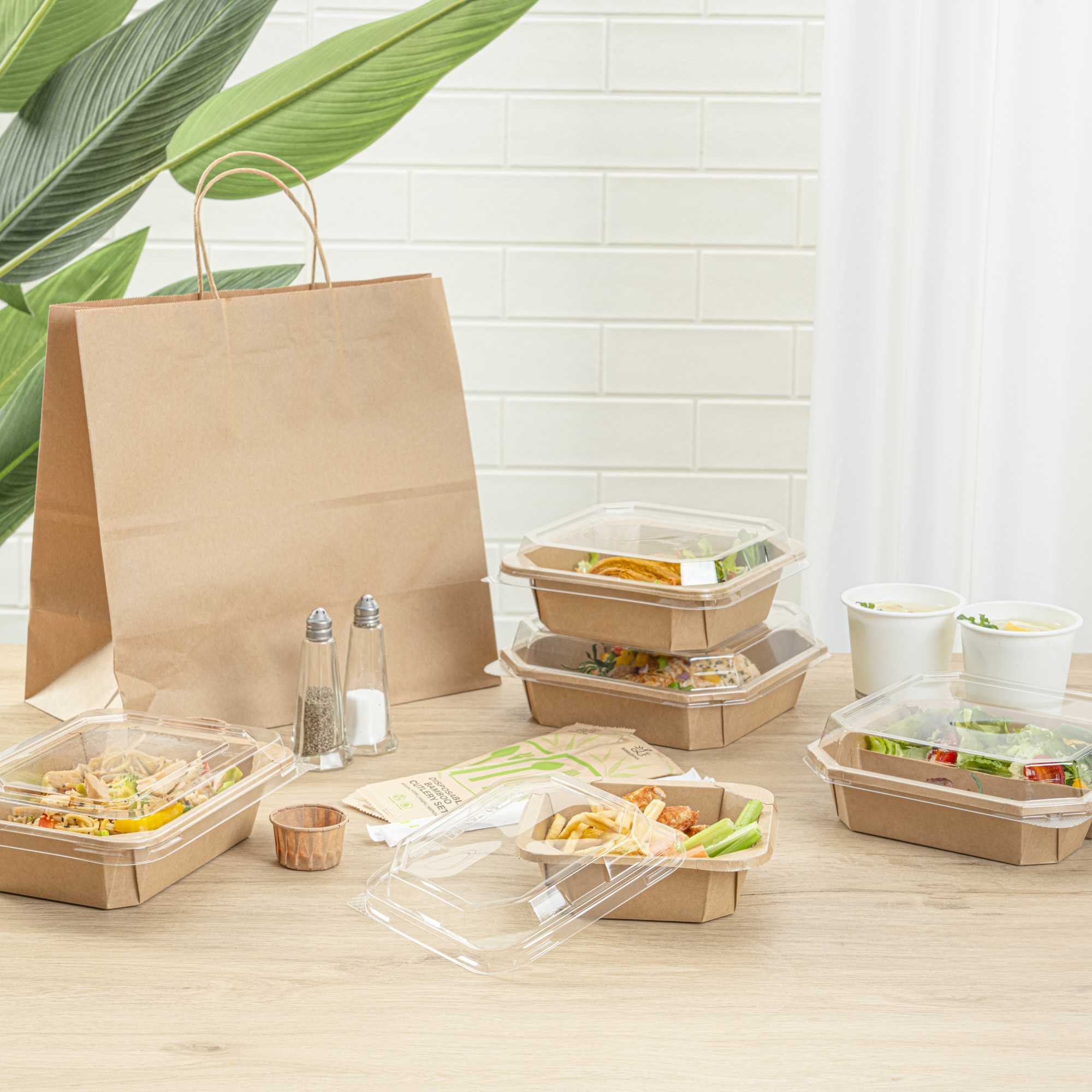 These kraft take out containers are lined with PLA, which acts as a barrier against grease and oils from food items. Maintains its integrity and averts leaks or messes.