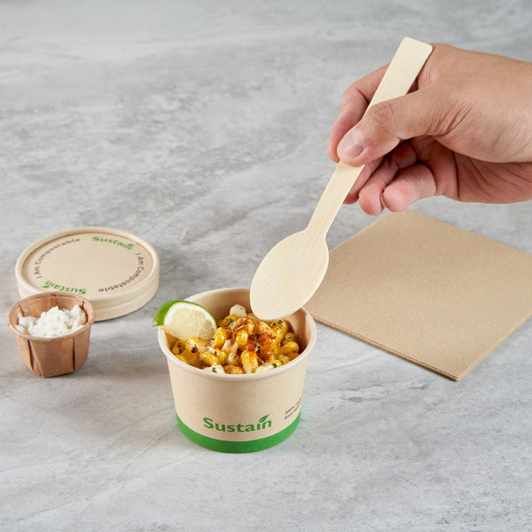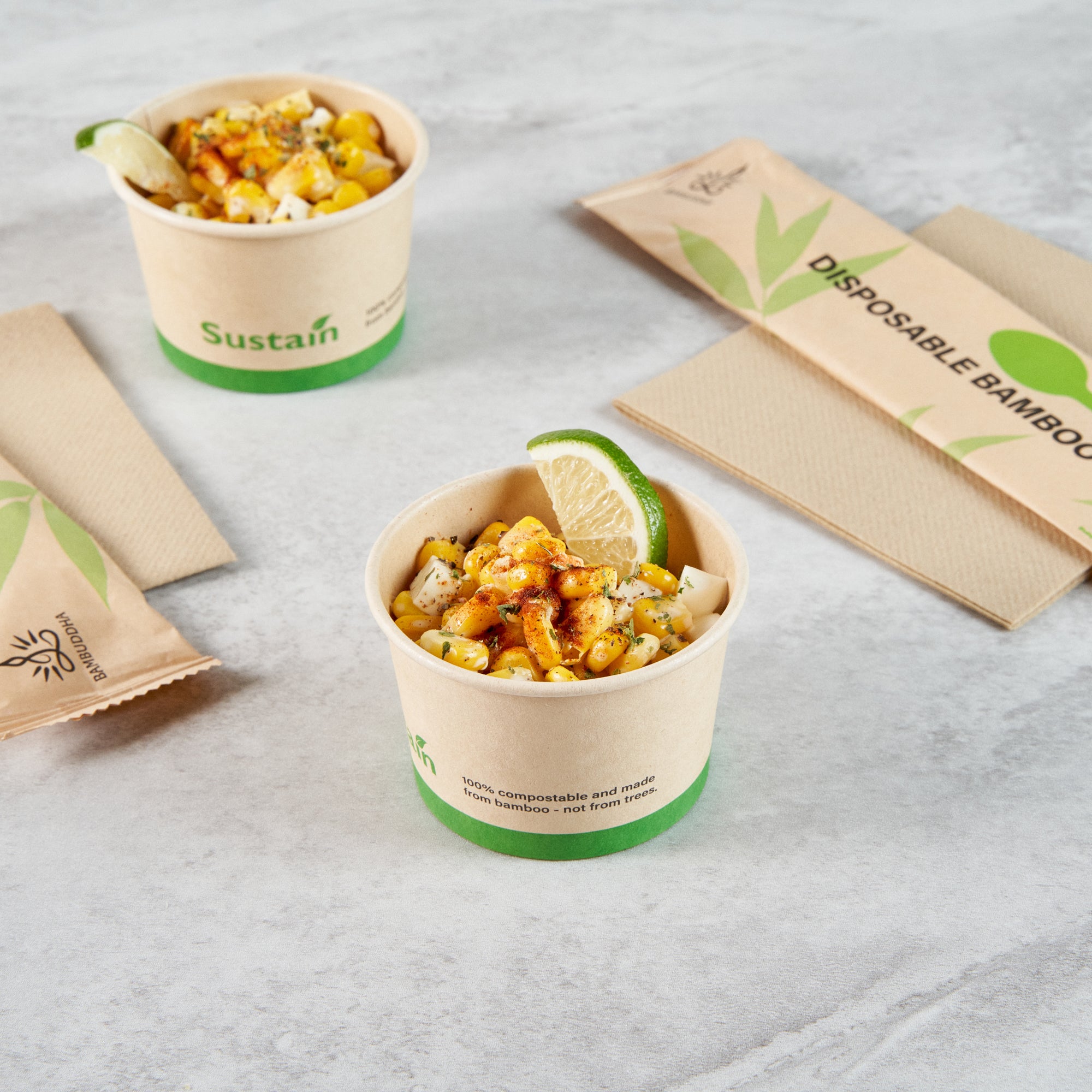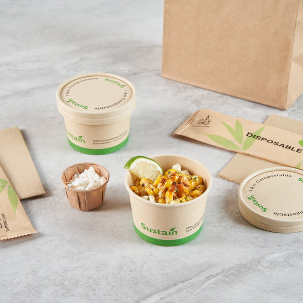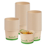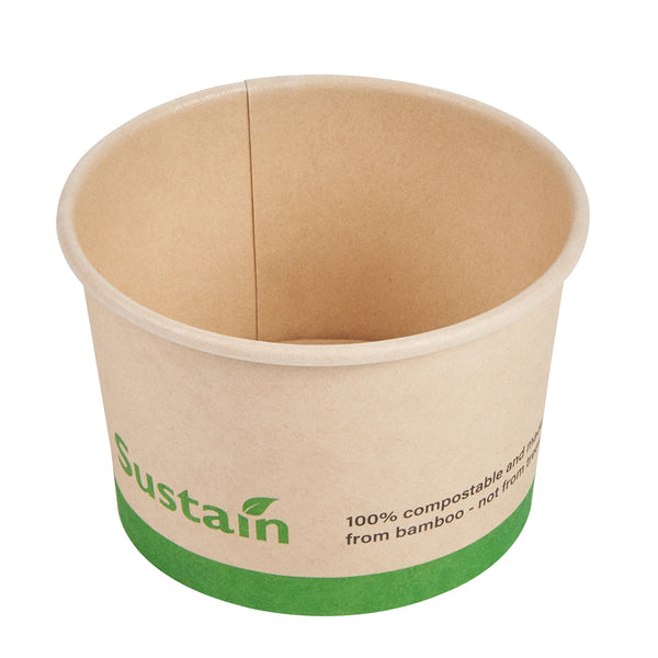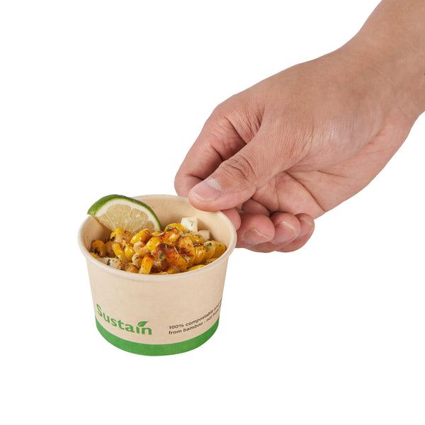 Achieve sustainable beverage service with eco-friendly designs. Sustain Compostable Cups offer a versatile solution with their bamboo paper and PLA lining, making them an ideal choice for establishments focused on environmentally responsible practices. Their 4-ounce capacity is perfect for serving sample-sized snacks, providing cafe owners with excellent portion control that enhances customer satisfaction. The rolled rim ensures a secure fit with coordinating lids, preventing leaks and maintaining beverage integrity, especially when serving hot drinks. Their freezer-safe design preserves the taste and quality of cold beverages, ensuring freshness for every service. Crafted from sustainable paper, these biodegradable espresso cups support eco-friendly disposal, aligning with the growing demand for green initiatives. Make a positive impact on the environment while delivering exceptional service with these disposable bamboo cups. Each order includes 200 Sustain Compostable Cups.