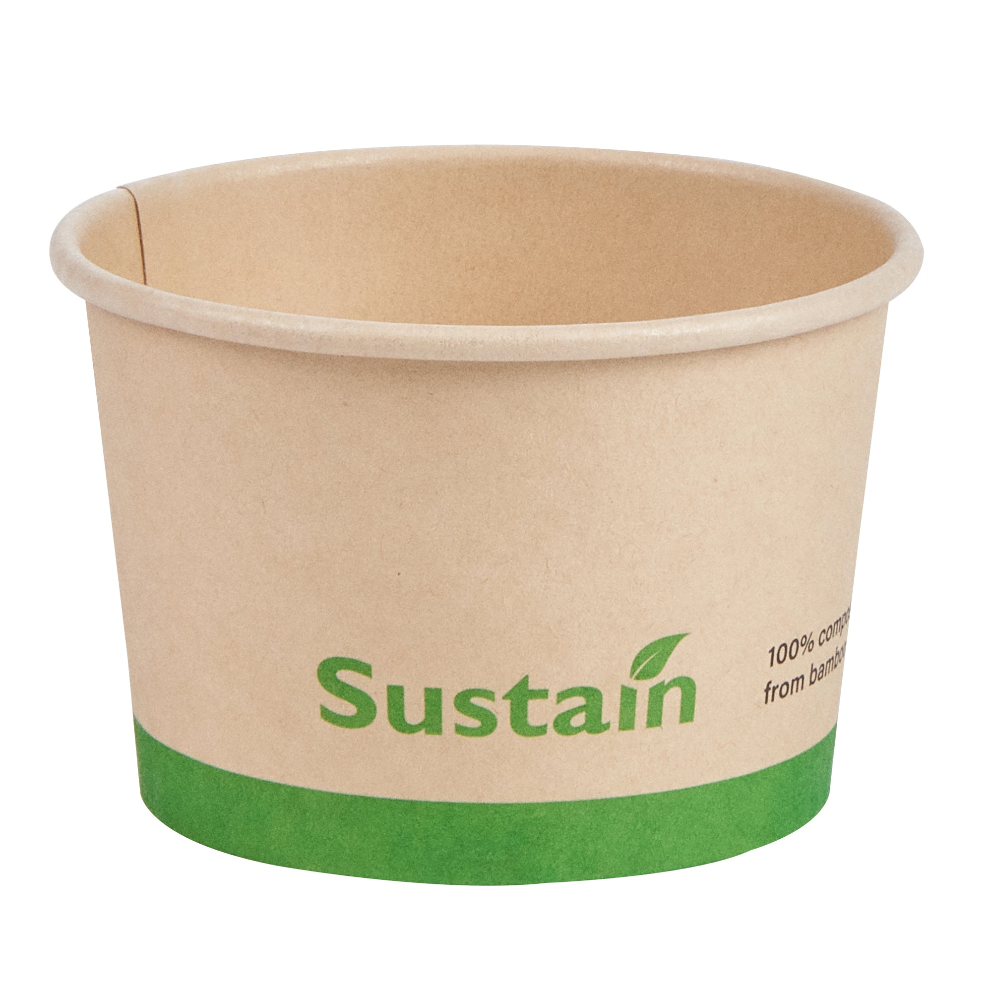 Achieve sustainable beverage service with eco-friendly designs. Sustain Compostable Cups offer a versatile solution with their bamboo paper and PLA lining, making them an ideal choice for establishments focused on environmentally responsible practices. Their 4-ounce capacity is perfect for serving sample-sized snacks, providing cafe owners with excellent portion control that enhances customer satisfaction. The rolled rim ensures a secure fit with coordinating lids, preventing leaks and maintaining beverage integrity, especially when serving hot drinks. Their freezer-safe design preserves the taste and quality of cold beverages, ensuring freshness for every service. Crafted from sustainable paper, these biodegradable espresso cups support eco-friendly disposal, aligning with the growing demand for green initiatives. Make a positive impact on the environment while delivering exceptional service with these disposable bamboo cups. Each order includes 50 Sustain Compostable Cups.