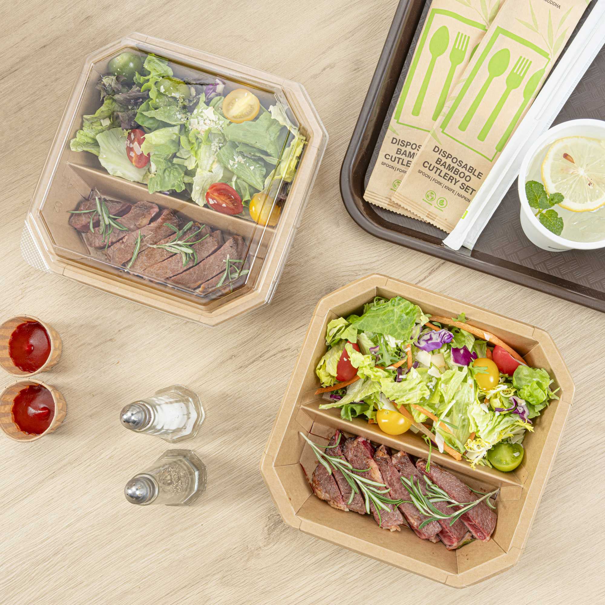 41 OZ OCTAGONAL KRAFT PAPER TAKE OUT CONTAINER - 2 COMPARTMENTS